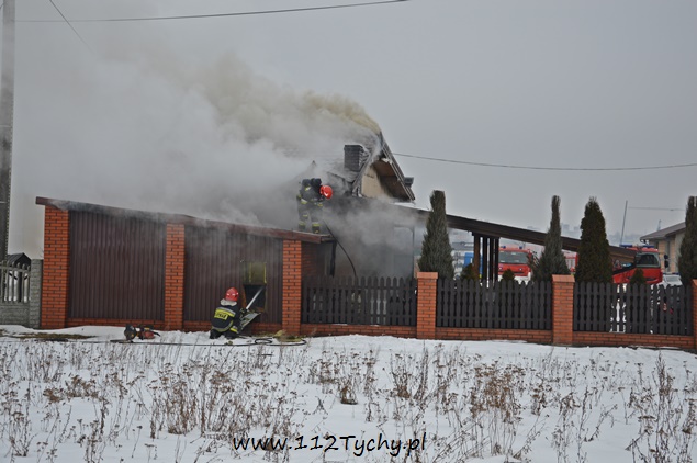 19 stycznia o godzinie 9.15 do MSK w Tychach wpłynęło zgłoszenie o pożarze garażu przy budynku jednorodzinnym na ulicy Strzeleckiej. Na miejsce zadysponowane zostały trzy zastępy JRG Tychy (GBA, GCBA, GCBARt) i patrol Policji. Po dotarciu na miejsce strażacy zastali rozwinięty pożar garażu. Jak się okazało w trakcie działań pobliskie hydranty zamarzły. W związku z tym KDR zadysponował na miejsce kolejne zastępy: ciężkie zastępy z JRG Tychy (GCBA – Renault Kerax) i OSP Bieruń Stary (GCBA – Scania). Na czas działań gaśniczych rejon miasta Tychy zabezpieczał zastęp OSP Lędziny (GBA). W trakcie działań gaśniczych strażacy z palącego się garażu wynieśli 9 butli z gazami technicznymi. Celem dogaszenia ognia była potrzebna częściowa rozbiórka jednej ze ścian garażu, otwór został wycięty przy użyciu piły tarczowej do stali – podany został jeden prąd wody oraz częściowa rozbiórka dachu. W trakcie działań na miejsce dojechał również oficer operacyjny KM PSP Tychy (SLOp), a także patrol Straży Miejskiej. Po ugaszeniu ognia strażacy oddymili spalony garaż. Z uzyskanych informacji w spalonym garażu znajdowały się m.in. agregat prądotwórczy, myjka ciśnieniowa, kosiarki do trawy. Celem ustalenia przyczyn i okoliczności powstania pożaru na miejsce wezwany został policyjny technik i biegły z zakresu pożarnictwa. Działania na miejscu trwały ponad trzy godziny.
