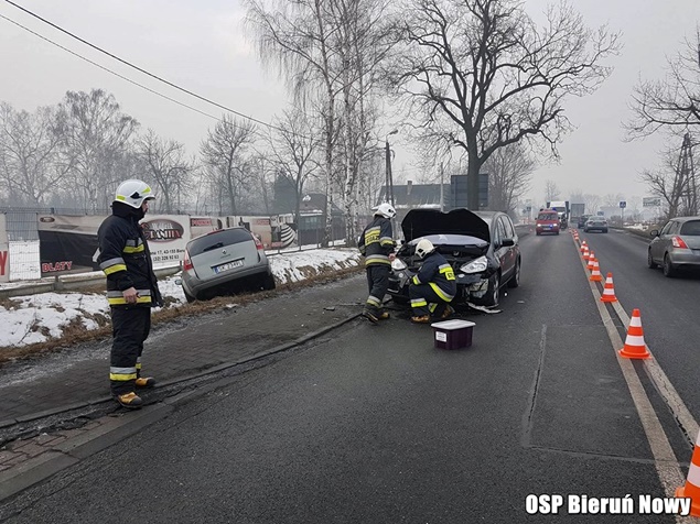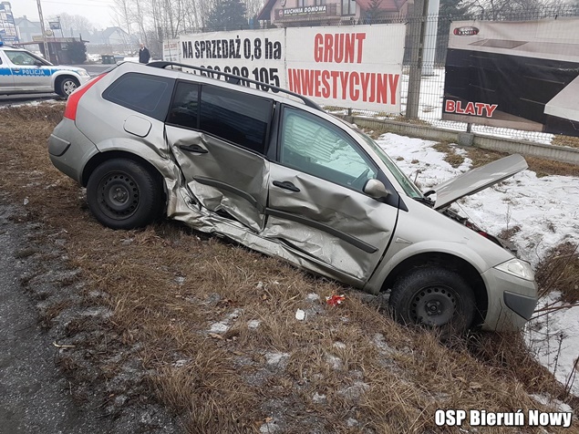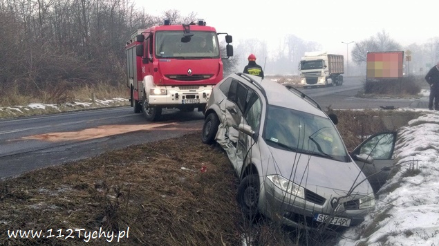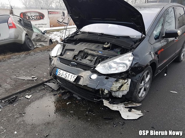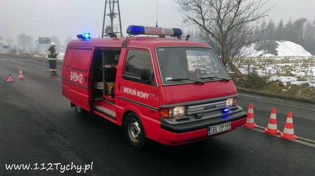 1 lutego około godziny 8.30 do MSK w Tychach zgłoszenie o zdarzeniu drogowym na ulicy Chełmskiej w Chełmie Śląskim. Ze zgłoszenia wynikało, że doszło do czołowo bocznego zderzenia Forda z Renaultem, a Renault po zderzeniu zatrzymało się w przydrożnym rowie. Na miejsce natychmiast wysłane zostały zastępy OSP Chełm Śląski (GLBARt), OSP Bieruń Nowy (GBARt, SLRt), OSP Czarnuchowice (GBA) i JRG Tychy (GBA, GCBA, SCRt) oraz patrol bieruńskiej Policji. Po dotarciu strażaków na miejsce okazało się, że żadna z osób podróżujących uszkodzonymi pojazdami nie doznała obrażeń. Uszkodzone pojazdy zostały usunięte z drogi przez strażaków, a następnie zneutralizowali plamy płynów eksploatacyjnych. Utrudnienia w ruchu trwały blisko godzinę. Bieruńscy policjanci prowadzą dalsze czynności w sprawie tego zdarzenia.