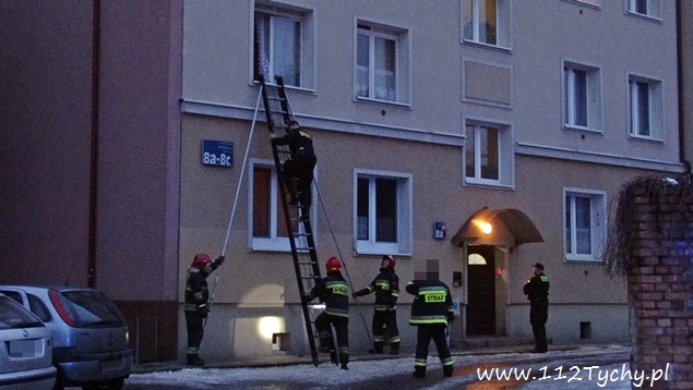 4 lutego około godziny 17.30 do dyżurnego tyskiej Policji wpłynęło zgłoszenie, że z jednego z okien na pierwszym piętrze w budynku wielorodzinnym przy ulicy Sienkiewicza miała wypaść kobieta. Na miejsce natychmiast wysłany został jeden z podległych patroli oraz ZRM. Po dotarciu na miejsce zgłoszenie potwierdziło się. Przy murze budynku siedziała około 60 letnia kobieta. Została ona zaopatrzona przez przybyłych na miejsce ratowników medycznych i przetransportowana do szpitala z podejrzeniem urazu kręgosłupa. Ze względu na to, że mieszkanie z którego okna wypadła kobieta było zamknięte na miejsce wezwany został zastęp JRG Tychy. Strażacy przy użyciu drabiny ratowniczej weszli wraz z policjantami do mieszkania, zamknęli okno i zabezpieczyli mieszkanie. Policjanci KMP Tychy prowadzą dalsze czynności mające na celu wyjaśnienie co było przyczyną upadku kobiety.