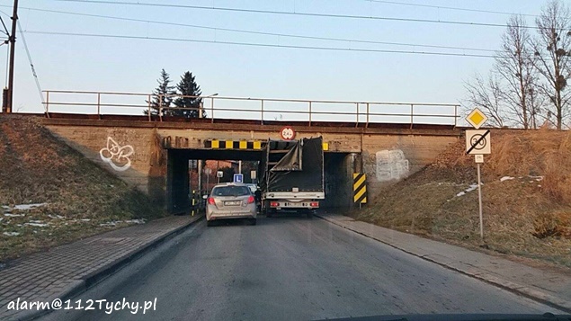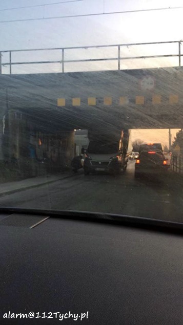 10 lutego po godzinie 16 na ulicy Glinczańskiej doszło do zdarzenia drogowego. Kierujący samochodem dostawczym Fiat Ducato jadąc ulicą Glinczańską w kierunku ulicy Budowlanych nie zastosował się do znaku B – 16 (na którym określono wysokość 2,4m) i uderzył swoim pojazdem w most, a następnie zaklinował się pod nim. Na miejsce wezwany został patrol Policji. Ruch w obu kierunkach na ulicy Glinczańskiej został bardzo utrudniony – odbywał się wahadłowo. Próby upuszczenia powietrza z kół celem wydostania się z potrzasku spełzły na niczym. Na miejsce zadysponowani zostali tyscy strażacy w sile dwóch zastępów (GBA, SCRt). Dopiero ich pomoc – usunięcie zabudowy – umożliwiła wyjazd pojazdu spod mostu. Przez blisko dwie godziny występowały utrudnienia w ruchu. Uszkodzony pojazd został odholowany przez pomoc drogową. Dalsze czynności prowadzą tyscy policjanci.
