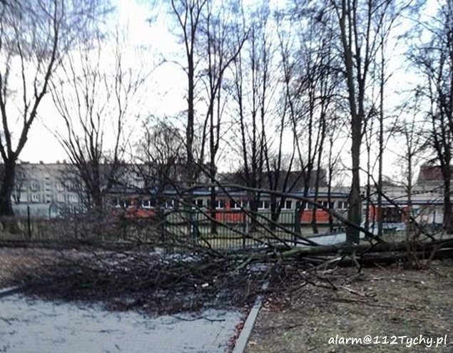 – ok. 7.15 – Tychy, ul. Stoczniowców 70 – powalone drzewo;