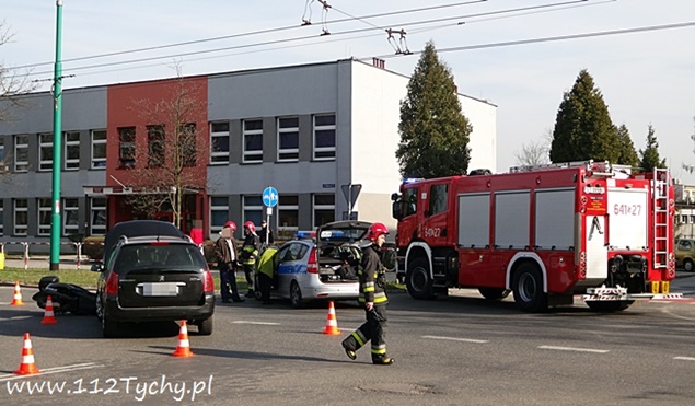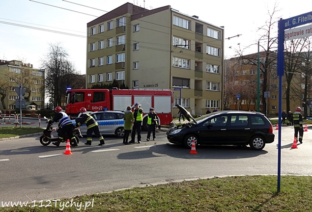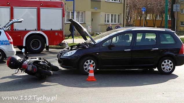 29 marca około godziny 9 na skrzyżowaniu ulic Edukacji z Fitelberga doszło do groźnego zdarzenia drogowego. W zdarzeniu uczestniczył skuter i samochód osobowy. Na miejsce natychmiast wezwane zostały służby ratunkowe: ZRM, patrol Policji i trzy zastępy JRG Tychy (GBA, GCBARt, SCRt). Po dotarciu na miejsce okazało się, że kierująca samochodem Peugeot kobieta włączając się do ruchu z ulicy Fitelberga w Edukacji nie ustąpiła pierwszeństwa jadącemu ulicą Edukacji kierującemu jednośladem. Kierującemu skuterem nic poważnego się na szczęście nie stało. Przez blisko czterdzieści minut ruch na skrzyżowaniu odbywał się z utrudnieniami – ruchem kierowali strażacy. Po wykonaniu dokumentacji przez pracujących na miejscu policjantów uszkodzony skuter jak i samochód osobowy zostały usunięte z drogi. Kierująca Peugeota została ukarana mandatem, a zdarzenie zostało zakwalifikowane jako kolizja.