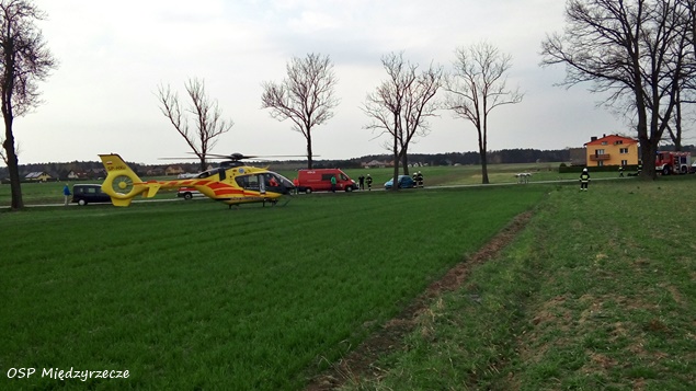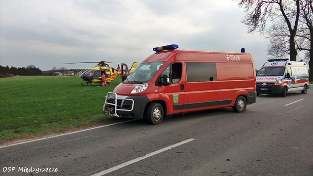 3 kwietnia około godziny 14.40 w Międzyrzeczu na ulicy Żubrów doszło do wypadku. Na miejsce zdarzenia zadysponowane zostały zastępy strażaków z JRG Tychy (GBA, GCBARt, SCRt), OSP Bojszowy Nowe (GBA), OSP Międzyrzecze (GLM), ZRM i patrole bieruńskiej Policji. Po dotarciu na miejsce okazało się, że doszło do czołowego zderzenia dwóch samochodów osobowych: Opel i Peugeot. Stan jednego z poszkodowanych (kierowca opla) wymagał transportu do szpitala specjalistycznego w Sosnowcu. W tym celu na miejsce zadysponowany został śmigłowiec HEMS – Ratownik 4 z bazy w Gliwicach. Działania strażaków poza zabezpieczeniem miejsca zdarzenia, udzieleniu poszkodowanym KPP polegały również na wyznaczeniu i zabezpieczeniu lądowiska dla latającej karetki. Jak wstępnie ustalili pracujący na miejscu policjanci oraz z relacji świadków wynika, że kierujący oplem astra jadąc od strony Pszczyny w kierunku Bojszów na prostym odcinku drogi, w trakcie wykonywania manewru wyprzedzania zjechał na przeciwległy pas ruchu i doprowadził do zderzenia z prawidłowo jadącym peugeotem 206, po czym dachował do przydrożnego rowu. W wyniku tego zdarzenia ranne zostały trzy osoby: dwie podróżujące Oplem oraz kierująca Peugeotem. Wszyscy trafili do szpitali. Kierująca Peugeotem 25 latka była trzeźwa – kierowcy Opla została pobrana krew do badania. Bieruńscy śledczy będą w tej sprawie prowadzić postępowanie, które pozwoli wyjaśnić dokładne przyczyny i okoliczności zdarzenia.