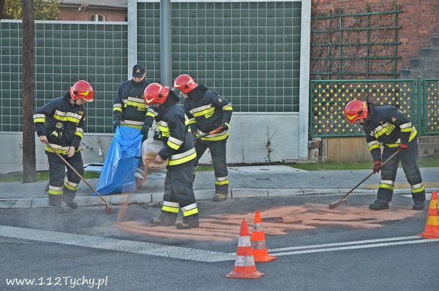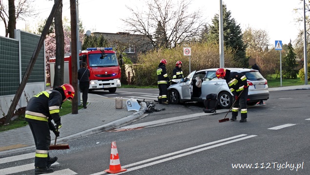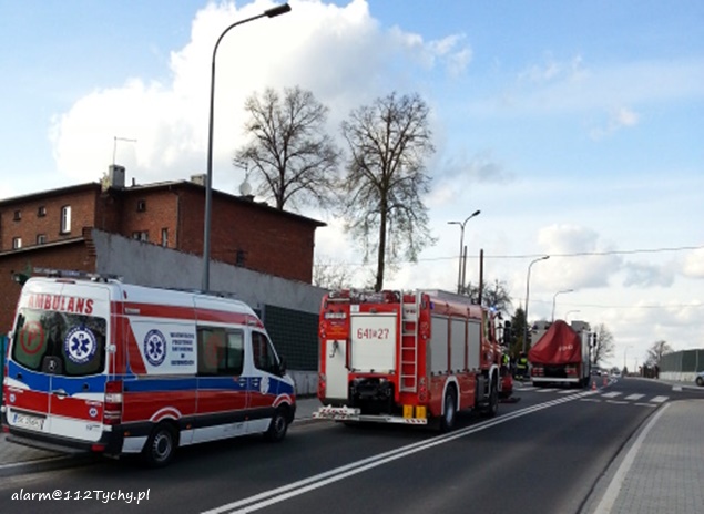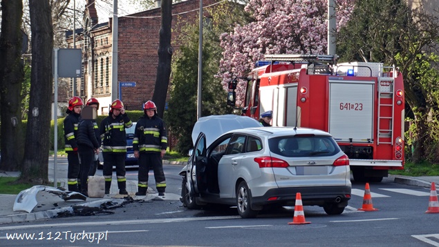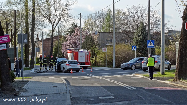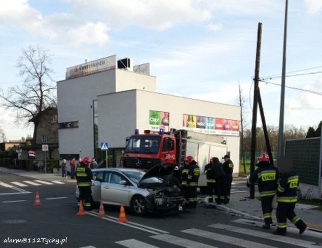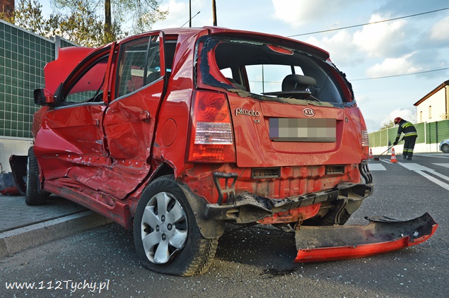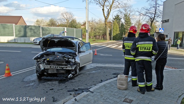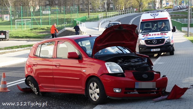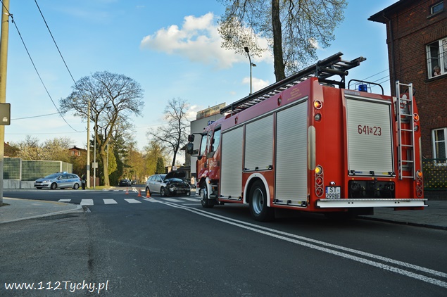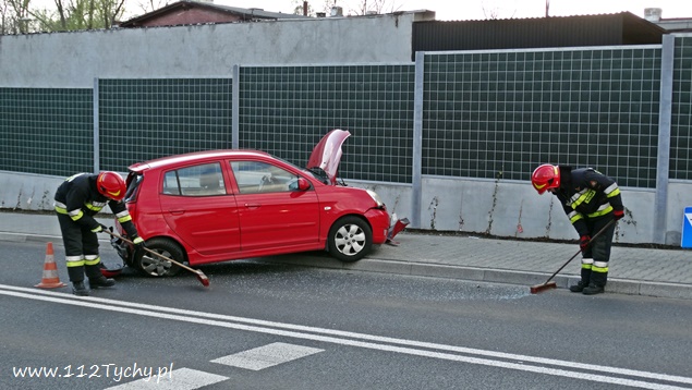 14 kwietnia około godziny 17.25 do MSK w Tychach wpłynęło zgłoszenie z WCPR Katowice z informacją o zdarzeniu drogowym na skrzyżowaniu ulic Damrota z Asnyka. Na miejsce natychmiast wysłane zostały trzy zastępy JRG Tychy (GBA, GCBARt, SCRt), ZRM i patrol Policji. Po dotarciu na miejsce zgłoszenie potwierdziło się. Na skrzyżowaniu doszło do zderzenia się dwóch samochodów osobowych: Forda z Kią. Miejsce zdarzenia zostało zabezpieczone przez strażaków, dodatkowo w rozbitych pojazdach odłączone zostały akumulatory. Jak ustalili pracujący na miejscu Policjanci winną zdarzenia była kierująca Fordem kobieta, która jadąc ulicą Damrota nie ustąpiła pierwszeństwa przejazdu jadącemu Kią mężczyźnie. W wyniku zderzenia Kia uderzyła jeszcze w betonowe podpory ekranów dźwiękochłonnych. Na szczęście kierującym uszkodzonymi pojazdami nic poważnego się nie stało. Uszkodzone pojazdy zostały odholowane przez pomoc drogową. Po usunięciu pojazdów strażacy zneutralizowali plamy płynów eksploatacyjnych. Po blisko półtorej godzinie ruch w miejscu zdarzenia został całkowicie przywrócony. Kierująca Fordem została uznaną winną spowodowania kolizji i ukarana została mandatem.