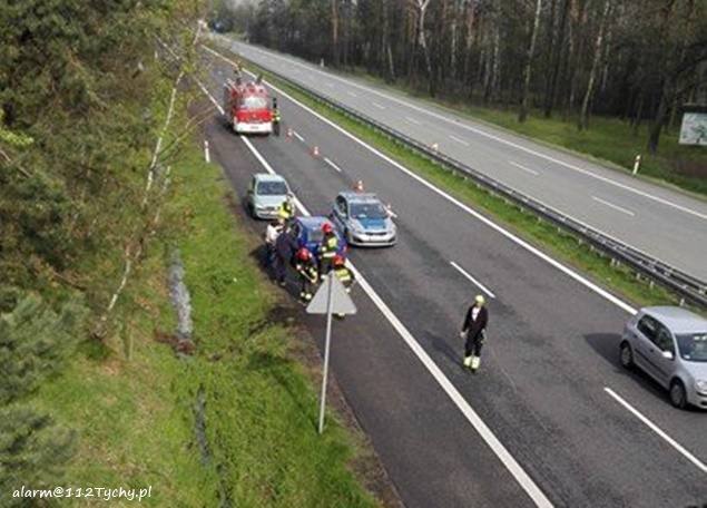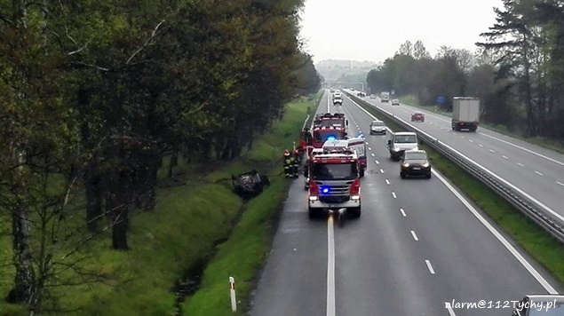 4 maja około godziny 13.50 do dyżurnego bieruńskiej Policji wpłynęło zgłoszenie o zdarzeniu drogowym na trasie S1 w rejonie 560km na pasie w kierunku Tychów. Na miejsce wysłane zostały trzy zastępy z JRG Tychy (GBAPr, GBARt, SCRt), patrol bieruńskiej Policji oraz ZRM. Po dotarciu na miejsce zgłoszenie potwierdziło się. W przydrożnym rowie na dachu leżał Chevrolet Cruze. Kierowca osobówki trafił pod opiekę ratowników medycznych – obyło się bez poważniejszych obrażeń. Prawy pas na czas działań ratowniczych został wyłączony z ruchu. Około godziny 15.45 w momencie gdy pojazd był już wyciągnięty z rowu i służby ratunkowe przygotowywały się do odblokowania drogi kilkadziesiąt metrów dalej doszło do kolejnego zdarzenia. Kierująca Skodą kobieta utraciła panowanie nad swoim pojazdem i wjechała pojazdem do rowu. Na szczęście i w tym przypadku obyło się bez poważniejszych obrażeń. W związku z tym zdarzeniem utrudnienia w ruchu przedłużyły się do godziny 17. Obydwoje kierujący zostali ukarani mandatami, a zdarzenia zakwalifikowane zostały jako kolizje.