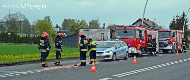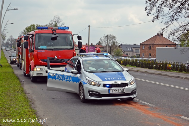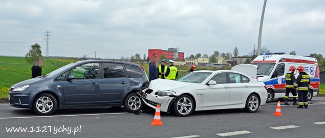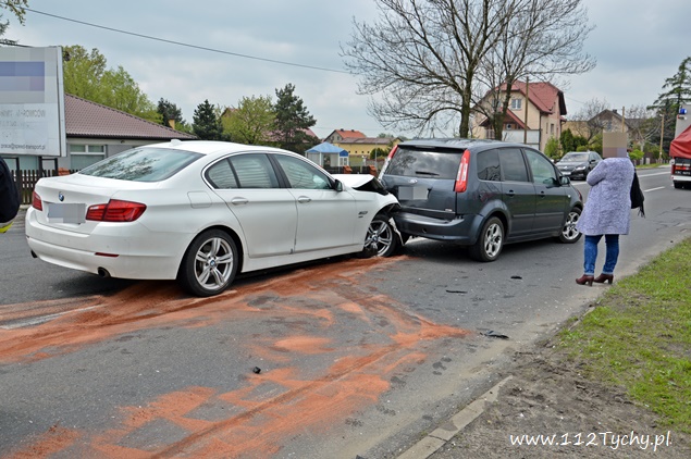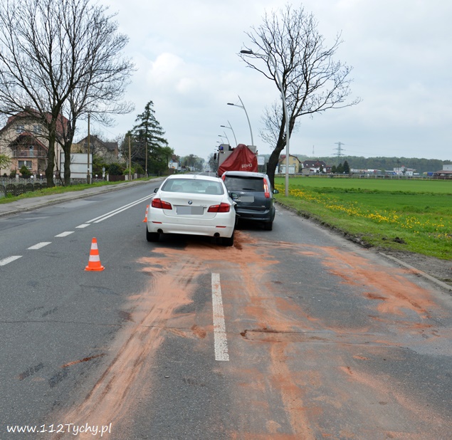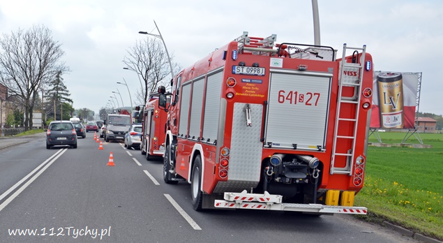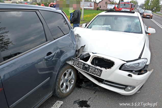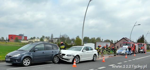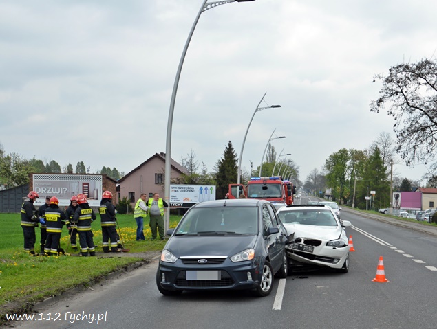 7 maja około godziny 12.40 na ulicy Mikołowskiej w rejonie numeru 179 (kierunek Mikołów) doszło do zdarzenia drogowego. W tył Forda wjechało BMW. Na miejsce natychmiast wezwane zostały służby ratunkowe: ZRM, trzy zastępy JRG Tychy (GBA, GCBARt, SCRt) i patrol WRD KMP Tychy. W miejscu zdarzenia wprowadzony został ruch wahadłowy. Jedna osoba podróżująca BMW (młoda dziewczyna) została zabrana na badania do szpitala w Katowicach Ligocie. Jak ustalili pracujący na miejscu policjanci winnym zdarzenia był kierowca Forda, który podczas zmiany pasa ruchu nie ustąpił pierwszeństwa jadącemu za nim kierującemu samochodem BMW. Działania strażaków na miejscu zdarzenia polegały na jego zabezpieczeniu, odłączeniu akumulatorów a następnie neutralizacji płynów eksploatacyjnych. Przez blisko dwie godziny trwały utrudnienia w ruchu – uszkodzone pojazdy były zakleszczone. Tyscy policjanci prowadzą dalsze czynności w sprawie tego zdarzenia.
