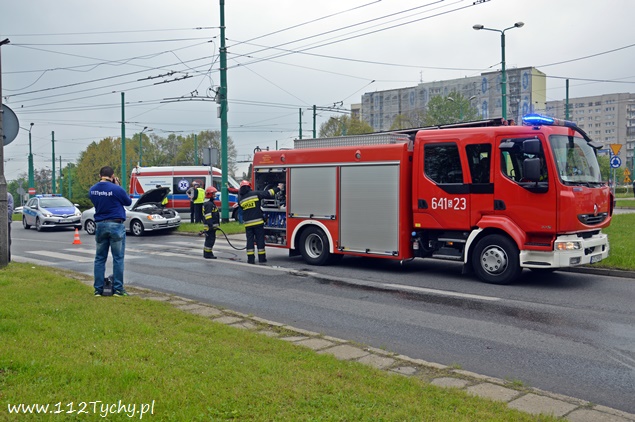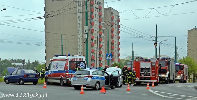 13 maja około godziny 10.35 doszło do zderzenia się dwóch samochodów osobowych na skrzyżowaniu al. Piłsudskiego z ul. Armii Krajowej (rondo Paprocańskie). W zdarzeniu brały udział Hyundai i Skoda. O zdarzeniu poinformowany został operator numeru alarmowego 112 w Katowicach,. Na miejsce zadysponowane zostały trzy zastępy z JRG Tychy (GBA, GCBARt, SCRt), ZRM i patrol drogówki KMP Tychy. Po dotarciu służb na miejsce zgłoszenie potwierdziło się. Dwoje dzieci (1 rok i około 8 lat) zostało zabranych do szpitala w Katowicach Ligocie na dokładne badania. W miejscu zdarzenia występowały utrudnienia w ruchu. Jak ustalili pracujący na miejscu policjanci winnym zdarzenia był kierujący Hyundaiem, który wjeżdżając na rondo uderzył w bok Skody, która miała pierwszeństwo przejazdu. Utrudnienia w ruchu trwały blisko dwie godziny. Po wykonaniu wszelkiej potrzebnej dokumentacji uszkodzone pojazdy zostały odholowane przez holowniki pomocy drogowej, a droga została uprzątnięta i ruch został przywrócony. Tyska Policja prowadzi dalsze czynności w sprawie tego zdarzenia.