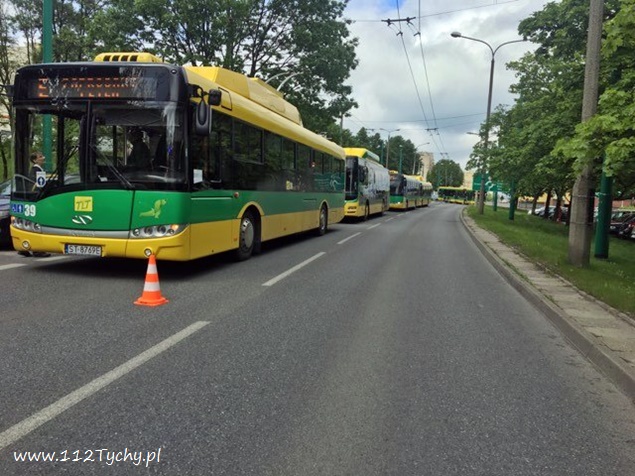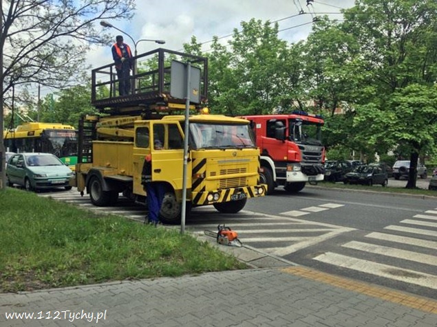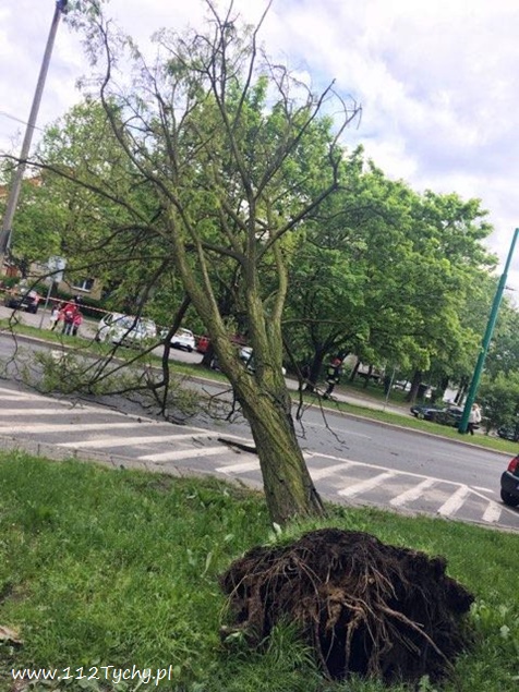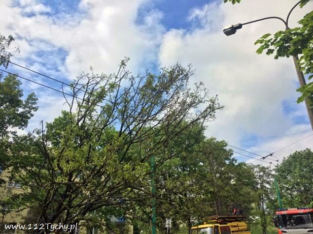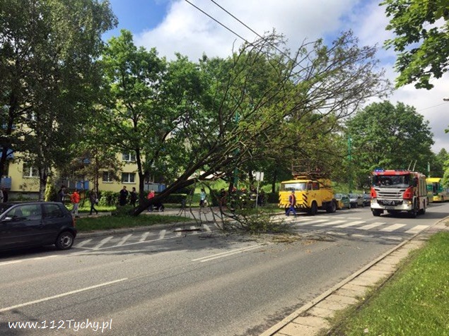 24 maja po godzinie 15 zablokowana została ulica Armii Krajowej. Na wysokości sklepu Biedronka przewróciło się drzewo, które upadając zahaczyło o trakcje trolejbusową co spowodowało odłączenie zasilania oraz zatarasowało drogę. Na miejsce zadysponowane zostało pogotowie techniczne TLT oraz jeden zastęp strażaków z JRG Tychy (GCBARt). Strażacy wraz z pracownikami TLT szybko uporali się z drzewem. Po około trzydziestu minutach drzewo zostało usunięte, a ruch przywrócony.