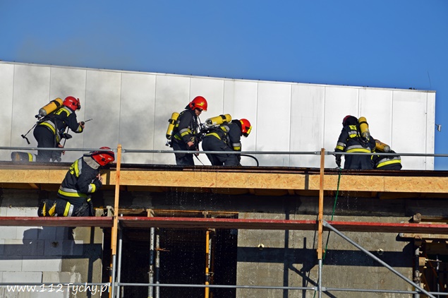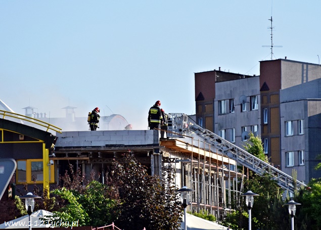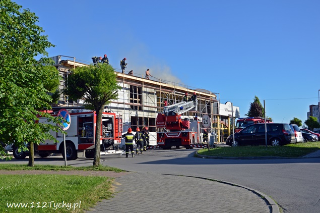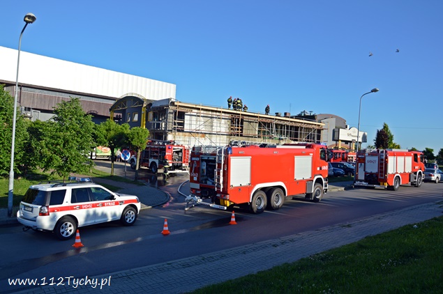 2 czerwca około godziny 18.30 do MSK w Tychach wpłynęło zgłoszenie o pożarze poszycia dachu na kompleksie handlowym przy al. Piłsudskiego. Na miejsce zadysponowany został pluton gaśniczy z JRG Tychy (GBA, GBA, GCBARt, SD). Po dotarciu strażaków na miejsce okazało się, że doszło do pożaru poszycia oraz ocieplenia stropu jak i krokwi drewnianych na powierzchni około 30m2. Przed przybyciem strażaków na miejsce próbę gaszenia pożaru podjęli pracownicy, którzy wykonywali na dachu prace – kładli papę przy użyciu palnika z butli gazowej – co mogło doprowadzić do pożaru. Celem ugaszenia pożaru podany został jeden prąd wody. Dodatkowo użyta została piła ratownicza, przy użyciu której wycinane były kolejne elementy poszycia celem szybkiego zlokalizowania pożaru. Na miejsce pożaru zadysponowany został dodatkowy zastęp z JRG Tychy (GCBA) jako zaopatrzenie wodne. Po kilkunastu minutach pożar został opanowany. Około godziny 19 na miejsce pożaru przyjechał KM PSP Tychy st. bryg. Piotr Szojda wraz z p.o. d-cy JRG Tychy kpt. Piotrem Smelikiem – dostarczyli oni dodatkowo na miejsce kamerę termowizyjną. Od tego momentu dowodzenia działaniami gaśniczymi przejął KM PSP Tychy. Przy użyciu kamery termowizyjnej cały dach został sprawdzony – nie znaleziono innych zarzewi ognia. Strażacy rozebrali również spaloną konstrukcję i dodatkowo ją przelali wodą. Na czas działań gaśniczych rejon miasta Tychy zabezpieczał zastęp OSP Lędziny (GBA), który stacjonował na terenie JRG Tychy. Po godzinie 20 strażacy zakończyli swoje działania i obiekt został przekazany właścicielowi.
