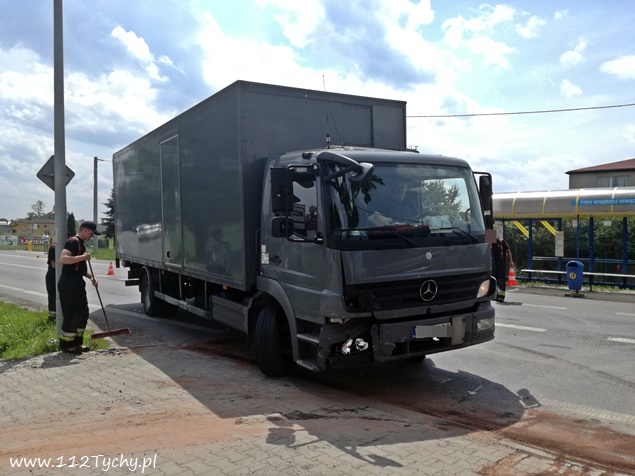 6 czerwca po godzinie 12 na ulicy Oświęcimskiej (DK 44) w rejonie skrzyżowania z ulica Urbanowicką doszło do groźnie wyglądającego zdarzenia drogowego. Na miejsce natychmiast wysłane zostały trzy zastępy JRG Tychy (GBA, GCBARt, SCRt), ZRM i patrol drogówki. Jak się okazało po dotarciu na miejsce kierujący samochodem osobowym marki Ford włączając się do ruchu z jednego z parkingów nie zachował należytej ostrożności i wymusił pierwszeństwo na jadącym ulicą Oświęcimską kierującym samochodem ciężarowym marki Mercedes doprowadzając do zderzenia. Na szczęście poza uszkodzonymi pojazdami nikomu nic się nie stało. W miejscu kolizji wprowadzony został ruch wahadłowy. Po około czterdziestu minutach uszkodzone pojazdy zostały usunięte na pobliski parking, a ruch na trasie DK 44 został przywrócony. Tyscy policjanci prowadzą dalsze czynności w sprawie tego zdarzenia.