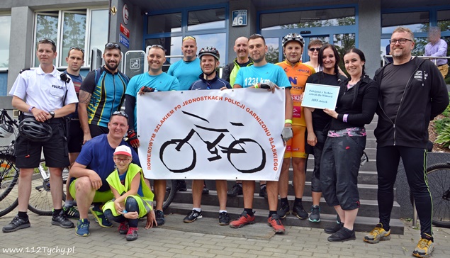 Dziś około godziny 14:30 z KPP Bieruń ruszyli w kierunku Tychów uczestnicy wyprawy ROWEROWYM SZLAKIEM PO JEDNOSTKACH POLICJI GARNIZONU ŚLĄSKIEGO. Dwaj policjanci z Komisariatu Policji w Strumieniu, z kilkoma osobami wsiedli na rowery aby zebrać pieniądze na leczenie ciężko chorej 16-letniej Wiktorii z Pyskowic. Na granicy powiatu bieruńsko- lędzińskiego, na ulicy Lokalnej rowerzystów przywitał p.o Komendanta Miejskiego Policji mł.insp. mgr Andrzej Trzciński, by po chwili ruszyć ulicami miasta do Komendy Policji w Tychach. Około godziny 15:00 dzisiejszy etap dobiegł końca. Na miejscu z uczestnikami przywitał się Prezydent miasta Pan Andrzej Dziuba. W tyskim odcinku uczestniczyli m.in