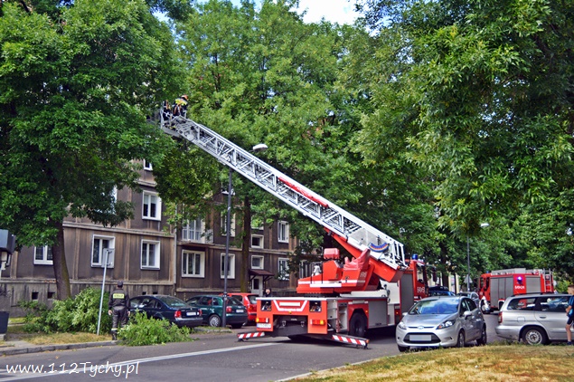 30 czerwca około godziny 10 do MSK w Tychach wpłynęło zgłoszenie o połamanych gałęziach zagrażających ludziom i zaparkowanym pojazdom na ulicy Czarnieckiego w rejonie kiosku Ruchu. Na miejsce skierowane zostały dwa zastępy JRG Tychy (GBAPr, SD). Po dotarciu na miejsce i sprawieniu drabiny mechanicznej strażacy szybko zażegnali niebezpieczeństwo. Połamane gałęzie zostały usunięte i ułożone na ziemi. Na czas trwania działań ruch na ulicy Czarnieckiego został wstrzymany. Po około trzydziestu minutach działania zostały zakończone.