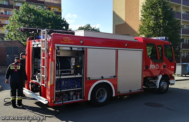 4 lipca około godziny 17 do MSK w Tychach wpłynęło zgłoszenie o pożarze opuszczonego pomieszczenia przy ulicy Baziowej. Na miejsce zadysponowane zostały dwa zastępy z JRG Tychy (GBA, GCBARt). Po dotarciu na miejsce ze względu na duże zadymienie strażacy w AOUO podali jeden prąd wody. W pomieszczeniu nikogo nie było, a pożarem objęte były szmaty i inne składowane tam rzeczy. W pomieszczeniu tym bardzo często przebywają osoby bezdomne. Po około trzydziestu minutach działania zostały zakończone i zastępy wróciły do koszar.