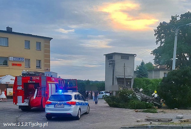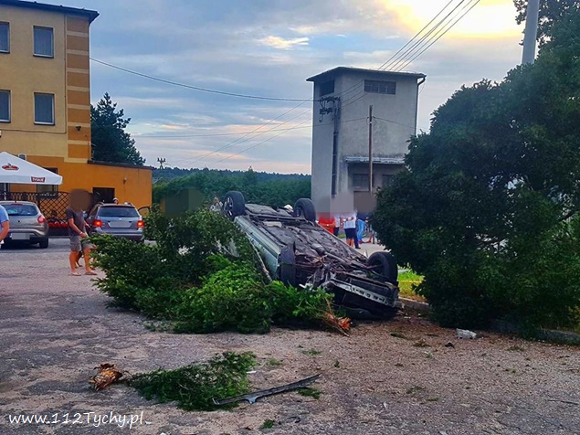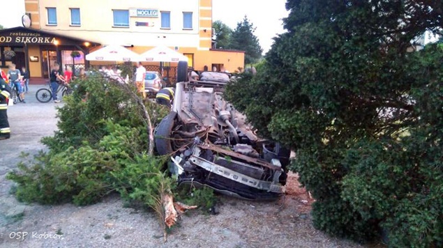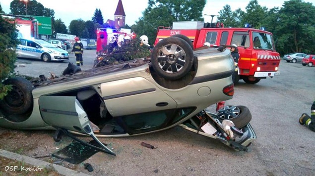16 lipca około godziny 20:13 w Kobiórze na ulicy Centralnej w rejonie restauracji „Pod Sikorką” doszło do dachowania samochodu osobowego. Na miejsce zadysponowane zostały zastępy OSP Kobiór (GBARt), JRG Pszczyna (GBA, SLRt), ZRM i patrol pszczyńskiej drogówki. Po dotarciu na miejsce zgłoszenie potwierdziło się. Renault Laguna leżał na dachu w pobliskiej kępie drzew. Samochodem Renault Laguna podróżowało trzech mężczyzn – po przebadaniu przez Policję – wszyscy w stanie nietrzeźwości. Działania strażaków polegały na zabezpieczeniu miejsca zdarzenia, odłączeniu akumulatora, a w pierwszej fazie udzieleniu kwalifikowanej pierwszej pomocy poszkodowanym. Po wykonaniu pełnej dokumentacji pracujących na miejscu policjantów pojazd został postawiony na koła i odholowany. Pszczyńscy Policjanci prowadzą dalsze dochodzenie w sprawie tego zdarzenia.
