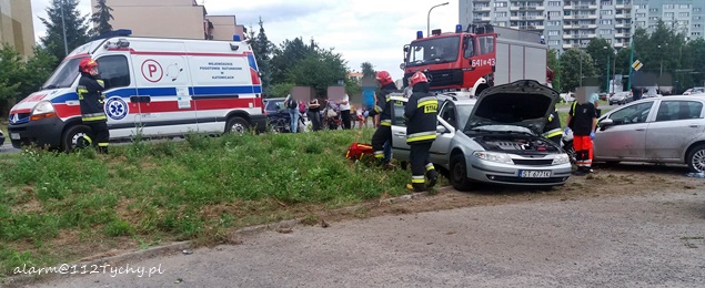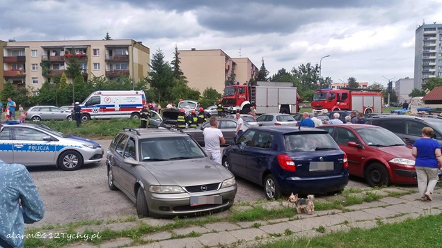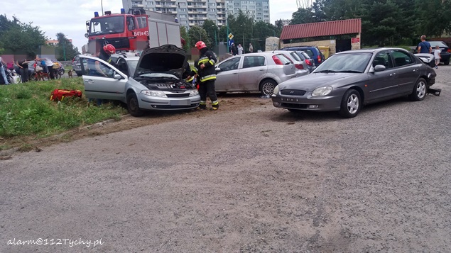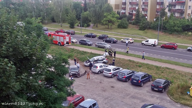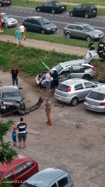 17 lipca około godziny 14.20 na ulicy Żwakowskiej tuż za rondem Sublańskim (Żwakowska – Harcerska) doszło do groźnie wyglądającego zdarzenia drogowego. Kierujący samochodem Renault Laguna utracił panowanie nad swoim pojazdem, uderzył w krawężnik a następnie przekoziołkował i zatrzymał się na zaparkowanych na pobliskim parkingu (przy Husarii Polskiej) samochodach (Fiat i Hyundai). Na pomoc kierowcy ruszyli świadkowie zdarzenia, jednocześnie informując o nim służby ratunkowe. Na miejsce zadysponowane zostały trzy zastępy JRG Tychy (GBA, GCBARt, SCRt), ZRM i patrol Policji. Jeszcze przed przyjazdem służb ratunkowych świadkowie postawili samochód na koła. Mężczyzna z urazem barku i otarciami został przetransportowany do szpitala na dalsze badania. Jak przekazali pracującym na miejscu policjantom świadkowie zdarzenia samochód miał poruszać się z nadmierną prędkością, co znacznie przyczyniło się do zdarzenia. Po wykonaniu wszystkich czynności przez Policję, uszkodzone pojazdy zostały odholowane. Kierowca samochodu był trzeźwy – zostały mu zatrzymane uprawnienia do kierowania pojazdami. Tyscy Policjanci prowadzą dalsze czynności mające na celu wyjaśnienie przyczyn i okoliczności tego zdarzenia. Sprawa tego zdarzenia swój finał będzie miała w sądzie.