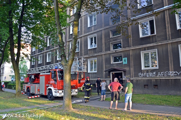 20 lipca około godziny 18.25 do MSK w Tychach wpłynęło zgłoszenie o dużym zadymieniu na klatce schodowej w budynku wielorodzinnym przy ulicy Cyganerii 4. Na miejsce zadysponowane zostały trzy zastępy JRG Tychy (GBA, GCBARt, SD) i patrol Policji. Po dotarciu na miejsce i rozpoznaniu sytuacji okazało się, że przyczyną zadymienia są palące się przy wejściu do klatki schodowej pozostałości wózka dziecięcego. W celu ugaszenia pożaru podany został jeden prąd wody z linii szybkiego natarcia. Po ugaszeniu pożaru strażacy oddymili i przewietrzyli klatkę schodową oraz sprawdzili czy w mieszkaniach nie ma osób potrzebujących pomocy (podtrucie dymem). Po około godzinie działania zostały zakończone i zastępy wróciły do koszar.