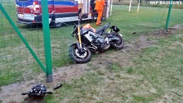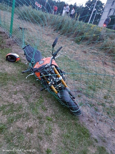 27 lipca po godzinie 20 do MSK w Tychach wpłynęło zgłoszenie o wypadku motocyklisty w Bieruniu (Jajostach) na ul. Bojszowskiej. Ze zgłoszenia wynikało, że motocyklista na łuku drogi wypadł z drogi i zatrzymał się na ogrodzeniu pobliskiego boiska. Na miejsce zadysponowane zostały zastępy OSP Bieruń Stary (GBA), OSP Bojszowy (GBA, GBA), JRG Tychy (GBAPr, SCRt), ZRM i patrole bieruńskiej Policji. Po dotarciu zastępów na miejsce poszkodowany motocyklista znajdował się już pod opieką ratowników medycznych. Działania strażaków na miejscu polegały na jego zabezpieczeniu i pomocy w transporcie poszkodowanego mężczyzny do karetki. Mężczyzna kierujący motocyklem z urazem biodra został przetransportowany do szpitala na dalsze badania. Po około trzydziestu minutach działania na miejscu zostały zakończone. Bieruńscy Policjanci prowadzą dalsze czynności w sprawie tego zdarzenia.