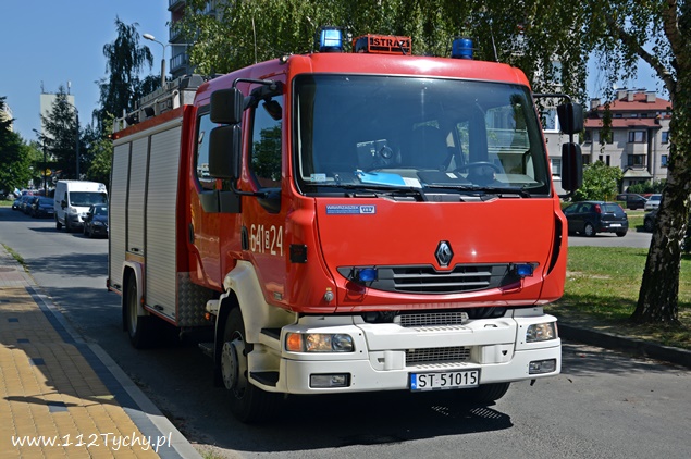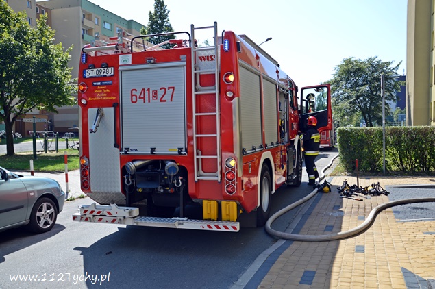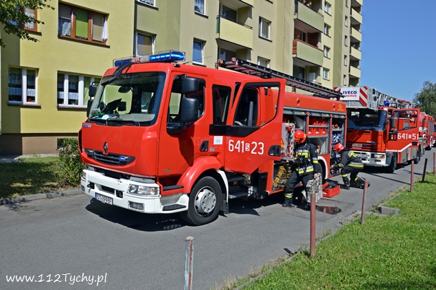 1 sierpnia około godziny 10 do MSK w Tychach wpłynęło zgłoszenie o dymie wydobywającym się z jednego z mieszkań na 9 piętrze w budynku wielorodzinnym przy ulicy Hubala 6. Na miejsce wysłany został pluton gaśniczy JRG Tychy (GBA, GBAPr, GCBARt, SD) oraz patrol Policji. Po dotarciu na miejsce zgłoszenie potwierdziło się. Strażacy przy użyciu podręcznego sprzętu burzącego wyważyli drzwi do mieszkania – w mieszaniu pożarem objęta była szafa na przedpokoju. Strażacy szybko poradzili sobie z zagrożeniem. Na miejsce pożaru dojechał również oficer operacyjny. Po ugaszeniu ognia na miejscu pojawił się właściciel mieszkania, któremu zostało ono przekazane. Klatka schodowa jak i mieszkanie zostały oddymione i przewietrzone. Dodatkowo na miejsce wezwani zostali przedstawiciele administracji budynku. Po około półtorej godzinie działania zostały zakończone i zastępy wróciły do koszar.