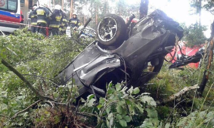 12 sierpnia około godziny 13:45 do SK KM PSP Tychy wpłynęło zgłoszenie o wypadku drogowym na 573km trasy DK 1 w Kobiórze, w kierunku Pszczyny. Na miejsce natychmiast zadysponowane zostały zastępy JRG Tychy (GBA, GCBARt, SLRt), OSP Kobiór (GBARt, GLB), JRG Pszczyna (GBA, SLRt), ZRM i patrole Policji. Ze zgłoszenia wynikało, że samochód osobowy wpadł do rowu i dachował. Po dotarciu na miejsce służb ratunkowych zgłoszenie potwierdziło się. Jak się okazało osobowa Honda z niewyjaśnionych przyczyn wypadła z drogi i dachowała, a następnie zatrzymała się na drzewach. Pojazdem podróżowało czterech mieszkańców Tychów. Niestety w wyniku tego zdarzenia dwoje pasażerów w wieku 26 i 27 zginęło na miejscu, a kierowca lat 29 (trzeźwy) i pasażer lat 30 trafili do szpitala. Ruch w miejscu zdarzenia odbywał się tylko jednym pasem, co spowodowało blisko trzygodzinne utrudnienia w ruchu (korek sięgał zjazdu z ulicy Sikorskiego). Na miejsce zdarzenia wezwana został grupa dochodzeniowo śledcza oraz prokurator. Pszczyńscy Policjanci pod nadzorem prokuratury wyjaśniają przyczyny i okoliczności tej tragedii.
