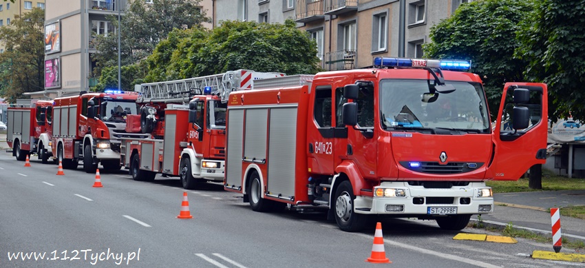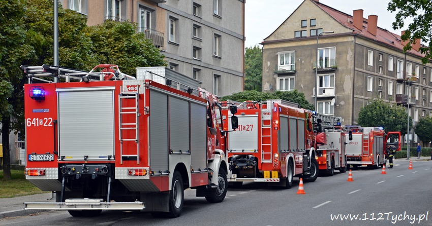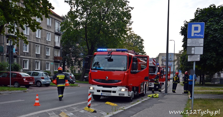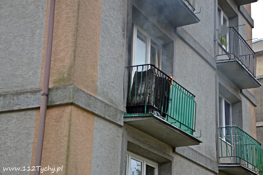 25 sierpnia około godziny 8.15 do SKKM PSP Tychy wpłynęło zgłoszenie o pożarze na balkonie w jednym z mieszkań na pierwszym piętrze budynku wielorodzinnego przy ulicy Cyganerii. Na miejsce zadysponowany został pluton gaśniczy JRG Tychy (GBA, GBA, GCBARt, SD) oraz patrol Policji. Po dotarciu na miejsce zgłoszenie potwierdziło się. Pożarem objęta była plastikowa osłona balkonu. Strażacy wraz z Policjantami szybko zażegnali niebezpieczeństwo. W mieszkaniu przebywała około 80 letnia lokatorka, która mogła podtruć się dymem. Celem jej przebadania na miejsce wezwany został ZRM, który po przybyciu podjął decyzje o przewiezieniu kobiety do szpitala na dokładniejsze badania. Jak ustalili pracujący na miejscu strażacy i Policjanci ustalili, że przyczyn a pożaru był najprawdopodobniej niedopałek papierosa. Po około trzydziestu minutach działania zostały zakończone i służby wróciły do koszar.