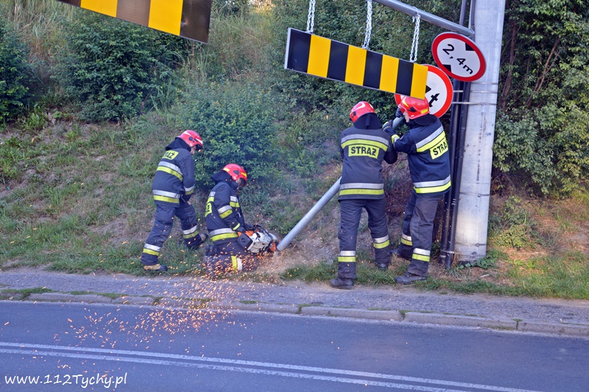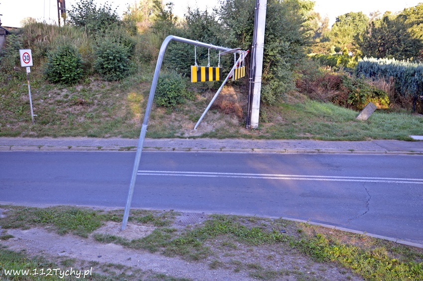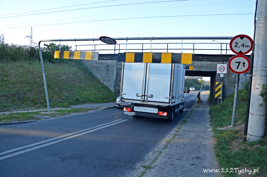 31 sierpnia około godziny 6.50 na ulicy Glinczańskiej doszło do zdarzenia drogowego. Kierujący samochodem dostawczym marki Mercedes Benz nie zastosował się do znaku B-16 ograniczenie wysokości pojazdu do 2,4m i uderzył w bramownicę, a następnie most. Po kilku minutach na miejscu był już patrol prewencji tyskiej Policji. W momencie dojazdu na miejsce kierowca dostawczaka próbował wycofać swój pojazd doprowadzając do uszkodzenia bramownicy (funkcjonariusze nie zdążyli zareagować). Pas w kierunku ulicy Stoczniowców 70 został zablokowany. Ruch odbywał się wahadłowo. Ze względu na uszkodzenia bramownicy na miejsce wezwani zostali strażacy z JRG Tychy (GBA), którzy przy użyciu piły tarczowej wycięli bramownicę, a następnie został ona przeniesiona na nasyp kolejowy. Przez blisko pół godziny występowały utrudnienia w ruchu. Na miejsce dodatkowo wezwany został patrol drogówki, który rozliczył w odpowiedni sposób kierowcę za swoją nieuwagę. Niestety jak widać bramownice nie pomagają, bo pomimo zahaczenia o nie kierowca pojechał dalej. Na miejsce wezwani zostali również przedstawiciele firmy, która jest odpowiedzialna za oznakowanie na terenie miasta.