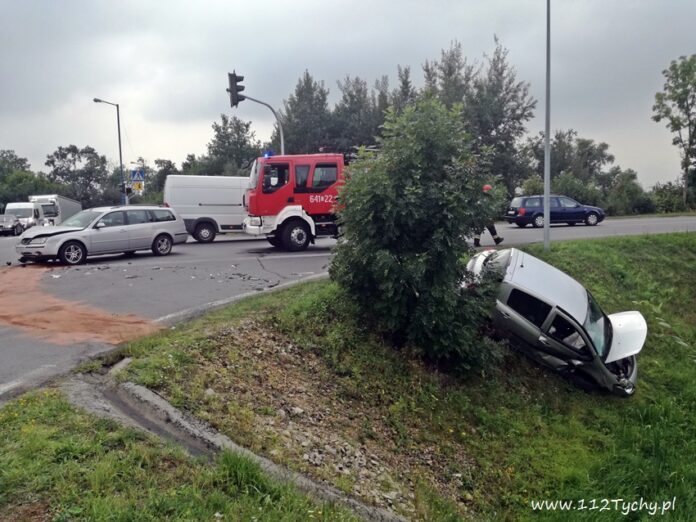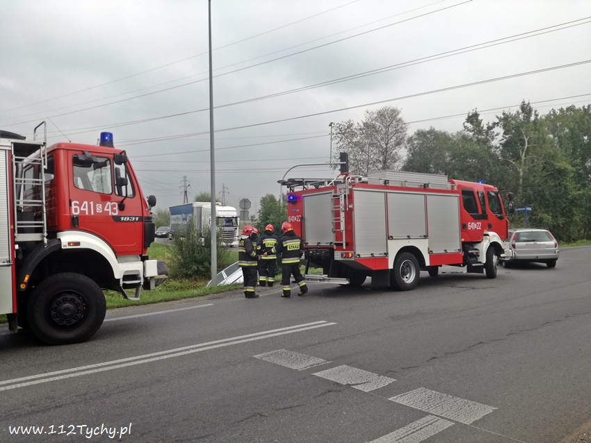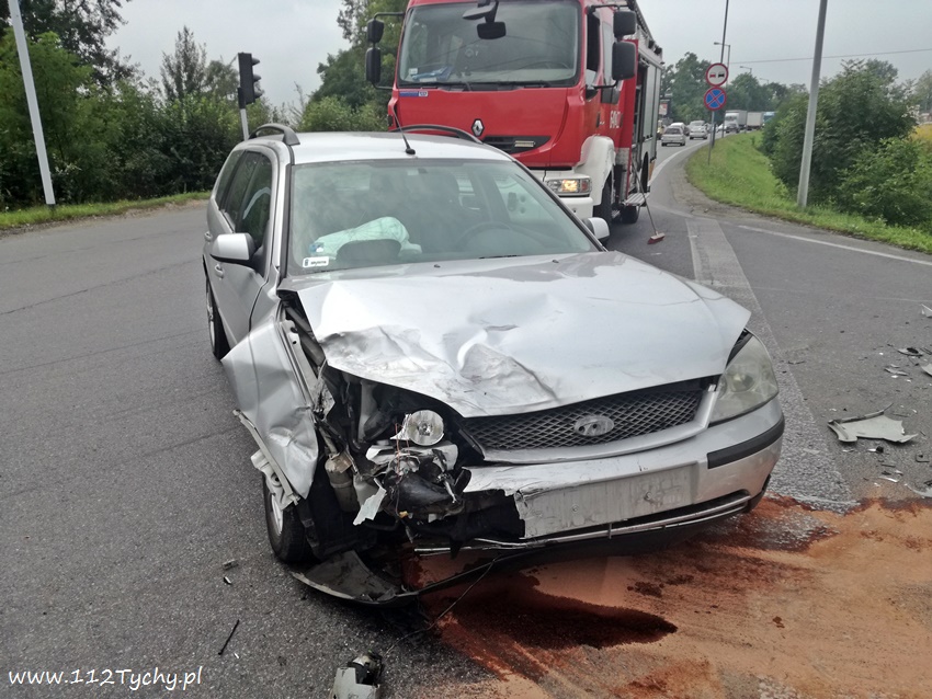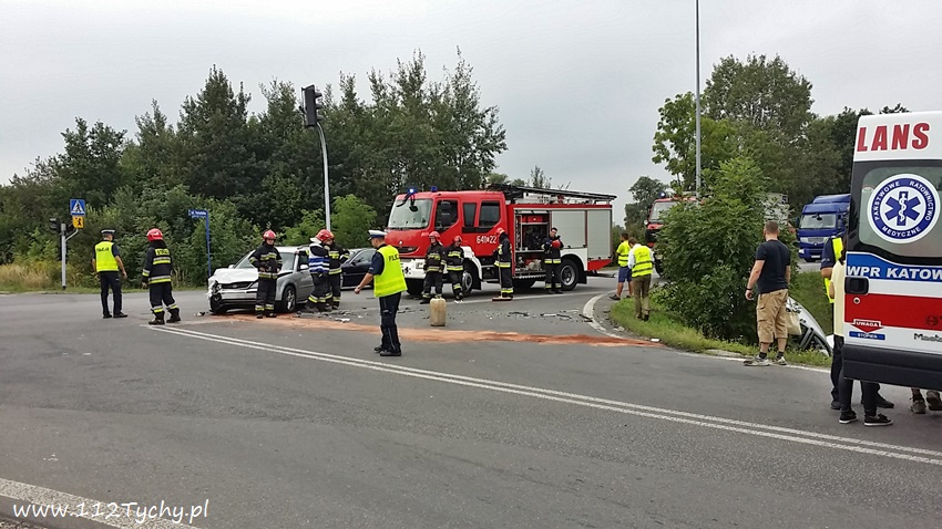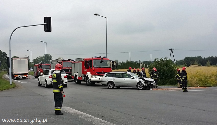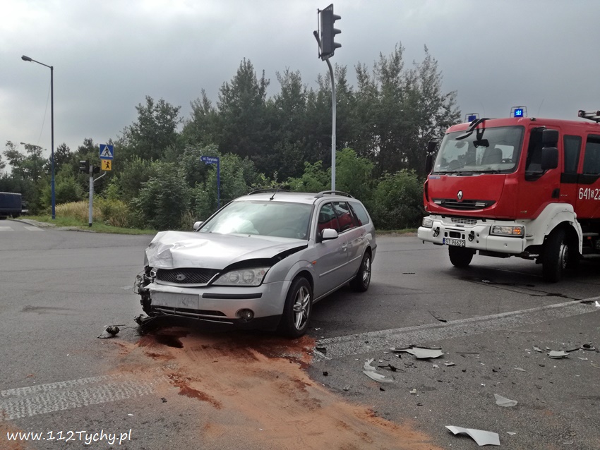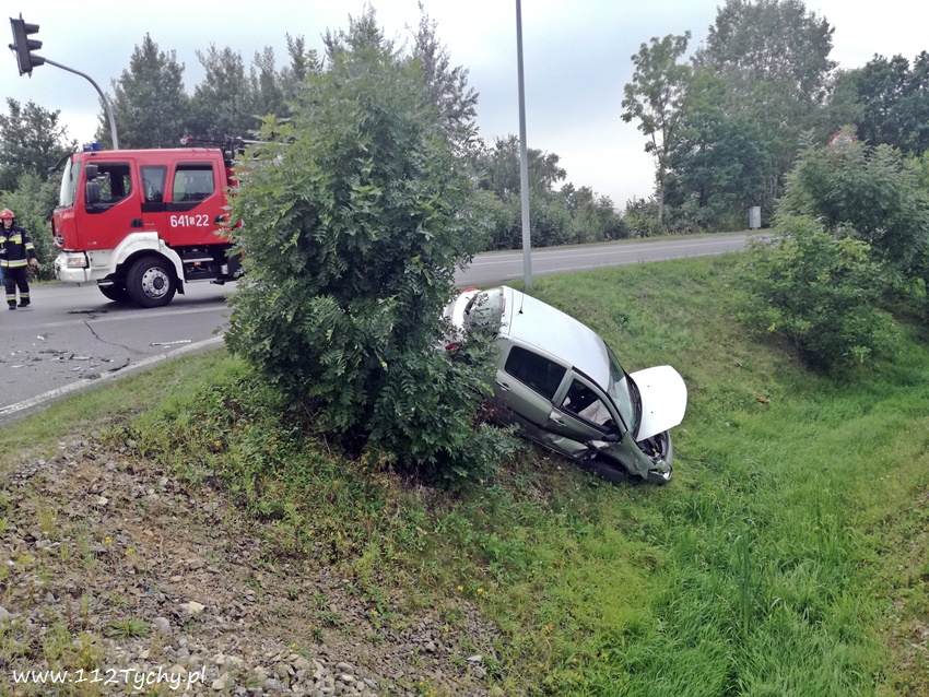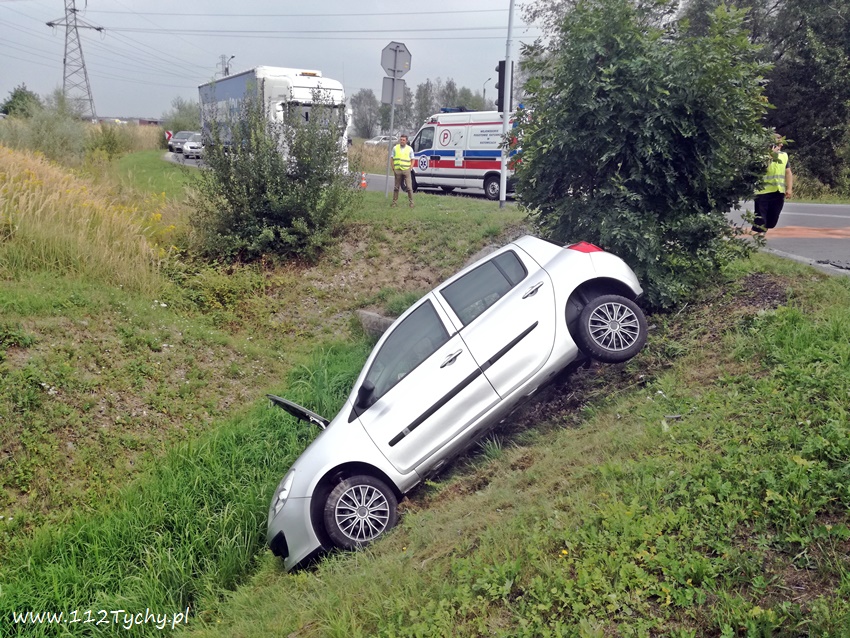 1 września około godziny 12.30 na skrzyżowaniu ulic Oświęcimskiej (DK 44) z Mysłowicką doszło do zdarzenia drogowego z udziałem dwóch samochodów osobowych. W zdarzeniu brały udział Ford Mondeo i Renault Clio. Zdarzenie zostało zgłoszone do dyżurnego SK KM PSP Tychy, który na miejsce zadysponował trzy zastępy JRG Tychy (GBA, GCBARt, SCRt), ZRM i patrole Policji. Jak się okazało po dotarciu na miejsce w wyniku zderzenia Renault wpadło do przydrożnego rowu. Dwie osoby podróżujące samochodami trafiły do szpitala na badania. W miejscu zdarzenia wprowadzona została ręczna regulacja ruchem przez strażaków (niestety wielu kierowców nie potrafi zachować się na skrzyżowaniu w takim przypadku). Działania strażaków na miejscu zdarzenia polegały na jego zabezpieczeniu, odłączeniu akumulatorów oraz neutralizacji plam płynów eksploatacyjnych. Dodatkowo na miejsce zdarzenia wezwany został policyjny technik kryminalistyki. Około godziny 14.50 uszkodzone pojazdy zostały usunięte, a ruch został przywrócony. Tyscy Policjanci prowadzą czynności w sprawie tego zdarzenia.