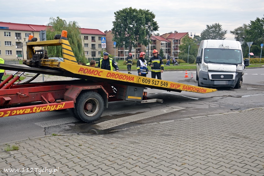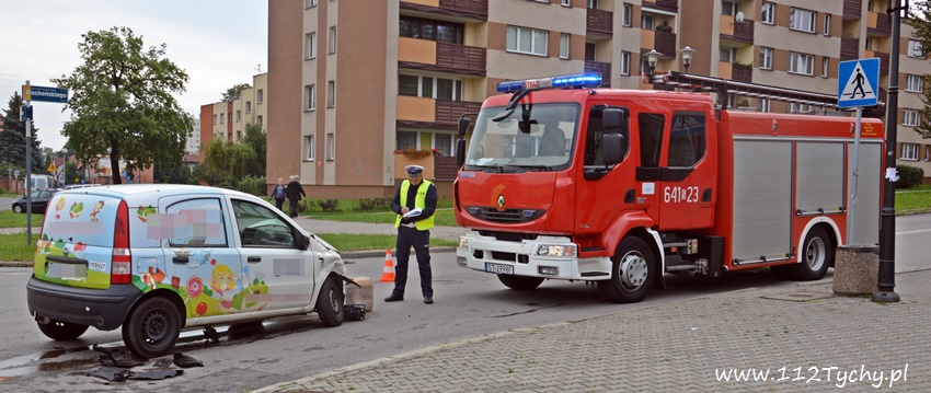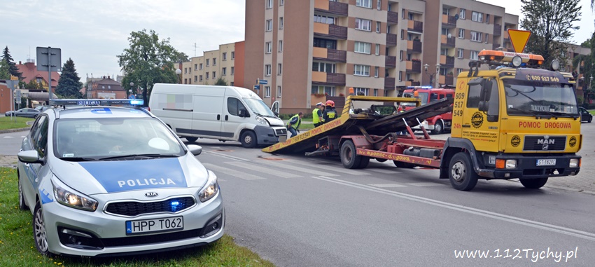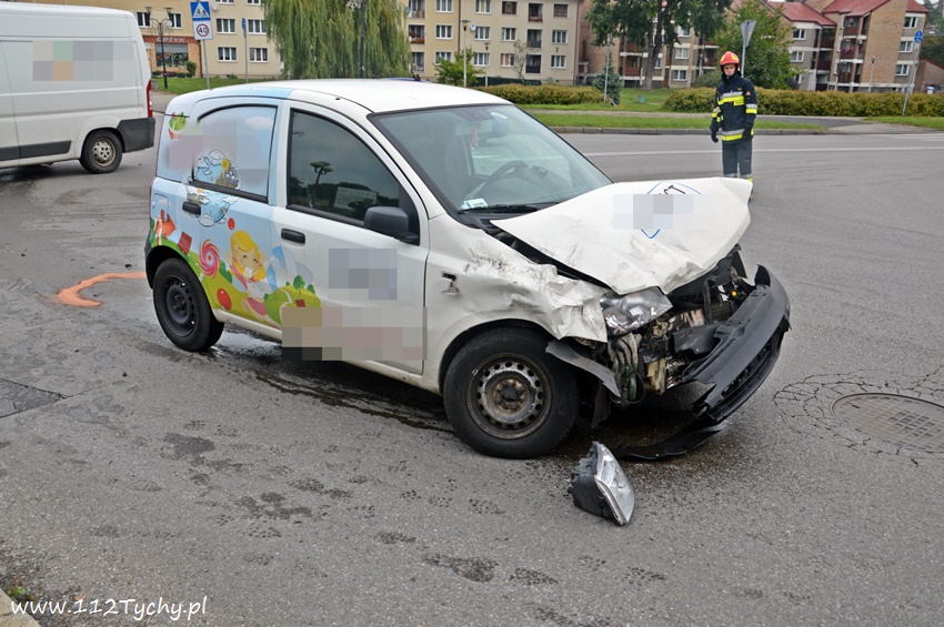 6 września około godziny 10.30 na skrzyżowaniu ulic Bocheńskiego – Boczna – Hlonda doszło do zdarzenia drogowego z udziałem dwóch samochodów. O zdarzeniu poinformowane zostały służby ratunkowe – na miejsce wysłane zostały patrole Policji, ZRM i jeden zastęp JRG Tychy (GBA). Po dotarciu na miejsce zgłoszenie potwierdziło się, a w zdarzeniu brały udział dwa Fiat- y: Panda i Ducato. Rozbite pojazdy zablokowały ruch na skrzyżowaniu. Na czas trwania działań na skrzyżowaniu została ręczna regulacja ruchem przez strażaków. Z ustaleń pracujących na miejscu Policjantów wynika, że 20 – latka kierująca Pandą jadąc ulicą Boczną wjechała na skrzyżowanie z ulicą Bocheńskiego wprost pod jadącego w kierunku Hotelowca dostawczego Ducato. Na szczęście poza potłuczeniami i rozbitymi pojazdami nic się nie stało. Kierujący pojazdami byli trzeźwi. Kierująca Pandą została ukarana mandatem karnym. Po około godzinie pojazdy zostały odholowane, a pracownicy pomocy drogowej uprzątnęli pas drogi z płynów eksploatacyjnych i elementów rozbitych pojazdów.