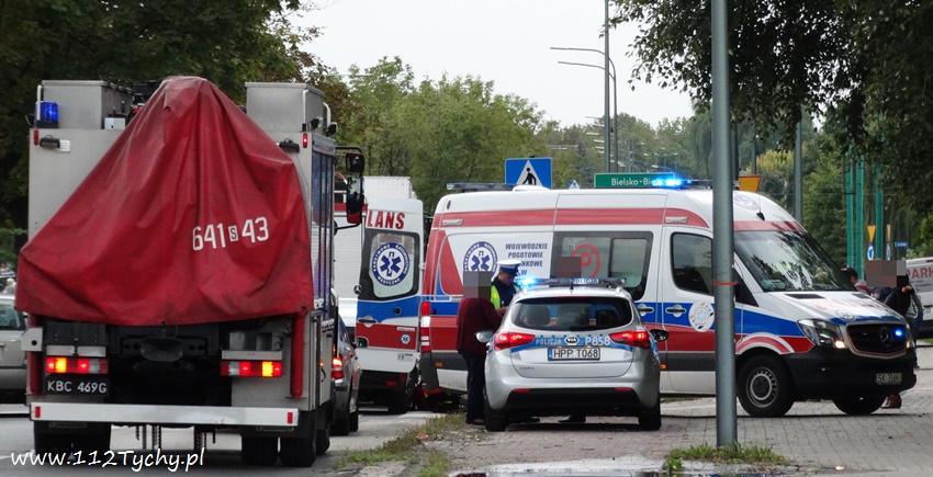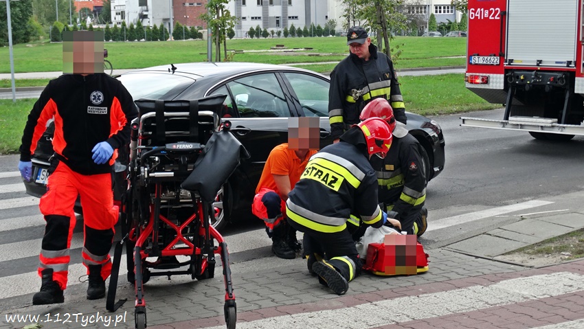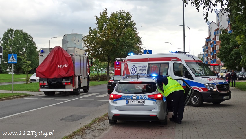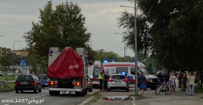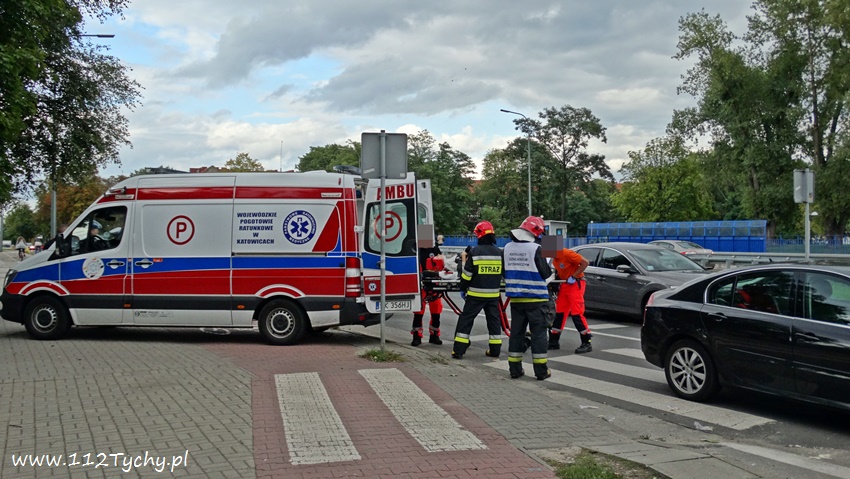 7 września około godziny 17 do SKKM PSP Tychy wpłynęło zgłoszenie o potrąceniu pieszej na oznakowanym przejściu na al. Bielskiej w rejonie nr 94. Na miejsce natychmiast wysłane zostały dwa zastępy JRG Tychy (GBA, SCRt), ZRM i patrol Policji. Po dotarciu służb na miejsce zgłoszenie potwierdziło się. Jak ustalili pracujący na miejscu Policjanci kierująca samochodem Renault Laguna 67 – letnia mieszkanka Mysłowic nie zachowała ostrożności w rejonie przejścia dla pieszych i potrąciła przechodząca przez przejście 57 – letnią kobietę. W wyniku uderzenia przez pojazd piesza upadła na jezdnię doznając obrażeń, które skutkują koniecznością hospitalizacji. Działania strażaków na miejscu zdarzenia polegały na jego zabezpieczeniu, udzieleniu KPP poszkodowanej oraz wsparcia psychicznego, a następnie przekazaniu poszkodowanej ratownikom medycznym. Na czas trwania działań ratunkowych prawy pas al. Bielskiej w kierunku Kobióra w miejscu zdarzenia został wyłączony z ruchu. Tyscy Policjanci prowadzą dalsze czynności w sprawie tego zdarzenia.