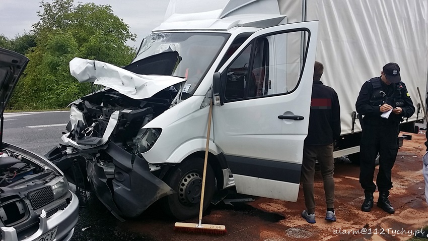 16 września około godziny 11.40 na ulicy Krakowskiej (DK 44) w Mikołowie w rejonie skrzyżowania z ulica Bielską ( DW 928 ) doszło do zdarzenia drogowego z udziałem samochodu dostawczego i osobówki. Na miejsce wezwane zostały wszystkie służby, zastępy JRG Tychy, JRG Mikołów, ZRM i patrole mikołowskiej Policji. Dwa pasy w kierunku Tychów zostały całkowicie zablokowane. Jak ustalili pracujący na miejscu Policjanci sprawca zdarzenia jest kierowca osobowego Seat-a, który z niewyjaśnionych przyczyn utracił panowanie nad swoim pojazdem, wpadł w poślizg i przejechał przez pas zieleni uderzając w jadącego w kierunku Tychów dostawczego Mercedesa. Kierowca Seat-a został zabrany do szpitala na badania. Przez blisko godzinę ruch na DK 44 odbywał się z utrudnieniami. Mikołowscy Policjanci prowadzą dalsze czynności w sprawie tego zdarzenia.