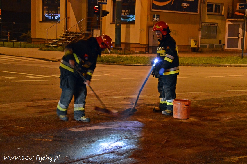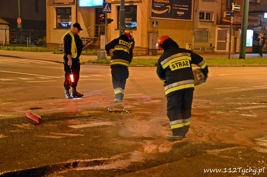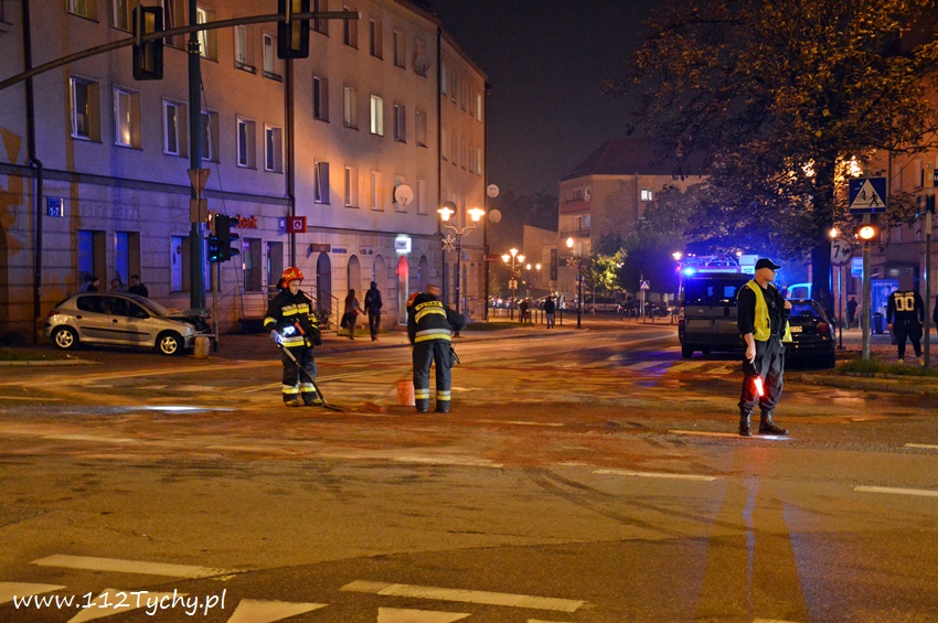 24 września około godziny 20 na skrzyżowaniu i Budowlanych – Begonii – Bocheńskiego doszło do czołowego zderzenia dwóch samochodów osobowych. Ze zgłoszenia, które otrzymał dyżurny KMP Tychy wynikało, że nie ma osób poszkodowanych. Na miejsce wysłane zostały patrole Policji oraz trzy zastępy strażaków z JRG Tychy (GBA, GCBARt, SCRt). Po dotarciu na miejsce zgłoszenie potwierdziło się. W zdarzeniu brały udział Ford i Peugeot. Funkcjonariusze Policji zabezpieczyli miejsce zdarzenia, a następnie ze względu na brak osób poszkodowanych pomogli w usunięciu rozbitego Forda na pobliską zatokę przystankową, a Peugeot usunięty został na chodnik. Przybyli na miejsce strażacy zneutralizowali plamy płynów eksploatacyjnych. Na czas trwania działań strażaków na skrzyżowaniu wprowadzona została ręczna regulacja ruchem przez Policjanta – niestety nadal kierowcy nie potrafią zastosować się do poleceń wydawanych przez funkcjonariuszy. Po blisko czterdziestu minutach działania strażaków zakończyły się. Jak wstępnie ustalili pracujący na miejscu Policjanci WRD KMP Tychy winnym zdarzenia jest kierowca Peugeota, który wykonując manewr skrętu w lewo z ulicy Bocheńskiego w Budowlanych nie ustąpił pierwszeństwa przejazdu jadącemu na wprost z ulicy Begonii w Bocheńskiego kierującemu Fordem. Na szczęście skończyło się tylko lub aż na mocno uszkodzonych samochodach. Tyscy Policjanci prowadzą dalsze czynności w sprawie tego zdarzenia.