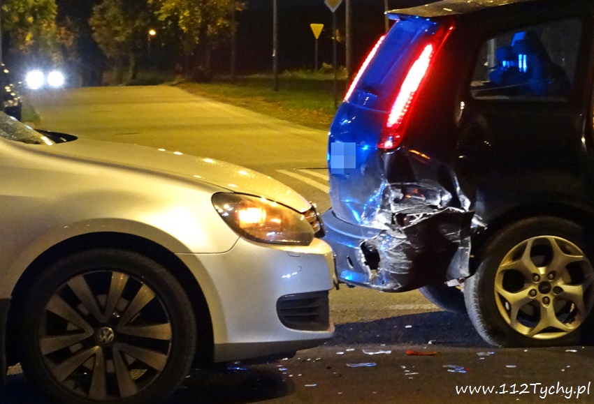 25 września około godziny 19 na ulicy Oświęcimskiej (DK 44) na skrzyżowaniu z ulicą Czarna doszło do zdarzenia drogowego. Do zdarzenia doszło na pasie w kierunku Bierunia. Na miejsce wezwane zostały patrole Policji i ZRM. Jak ustalili pracujący na miejscu Policjanci kierujący VW najechał na tył Forda. Jedna osoba podróżująca Ford-em została przetransportowana do szpitala na dokładniejsze badania. W miejscu zdarzenia wprowadzony został ruch wahadłowy – ruchem kierowali Policjanci. Jak się okazało kierujący VW 61 letni mężczyzna znajdował się w stanie po użyciu alkoholu – zostało mu zatrzymane prawo jazdy. Dodatkowo w miejscu zdarzenia zatrzymał się wracający z innej interwencji zastęp tyskich strażaków (GBA). Jednak w tym przypadku pomoc strażaków była zbędna. Po około czterdziestu minutach uszkodzone pojazdy zostały odholowane przez holowniki pomocy drogowej, a ruch został przywrócony. Tyscy Policjanci prowadzą dalsze czynności w sprawie tego zdarzenia.