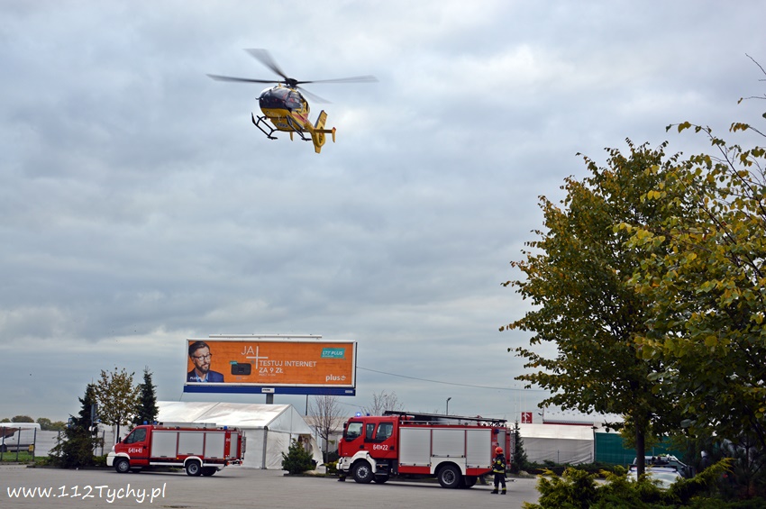 9 października przed godzina 8 rano na terenie Śląskiej Giełdy Kwiatowej przy ulicy Sadowej doszło do tragicznego w skutkach zdarzenia. W trakcie wykonywania prac na zadaszeniu pawilonów handlowych jeden z pracowników spadł na ziemię. Świadkowie zdarzenia natychmiast wezwali a miejsce ZRM. Przybyli na miejsce ratownicy podjęli czynności mające na celu uratowanie życia, ok. 58 letniego mężczyzny. Ze względu na jego obrażenia ratownicy podjęli decyzje o konieczności wezwania na miejsce latającej karetki (Ratownik 4 z bazy w Gliwicach) i transportu poszkodowanego do specjalistycznego szpitala. Celem zabezpieczenia lądowiska na miejsce zadysponowane zostały dwa zastępy tyskich strażaków (GBA, SLRt). Po przybyciu na miejsce załoga śmigłowca czynności ratunkowe były kontynuowane. Niestety podjęta przez ratowników reanimacja nie przyniosła oczekiwanego rezultatu. Będący na miejscu lekarz stwierdził zgon. Na miejsce wezwani zostali również Policjanci, Policyjny technik oraz prokurator. O wypadku powiadomiona została również Państwowa Inspekcja Pracy. Jak wstępnie ustalili pracujący na miejscu śledczy do zdarzenia doszło w momencie gdy mężczyzna nastąpił na płytę z plexi, która była zamontowana pomiędzy arkuszami z blachy. Tyscy Policjanci pod nadzorem prokuratury prowadzą dalsze czynności mające na celu wyjaśnienie przyczyn i okoliczności tej tragedii.