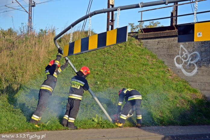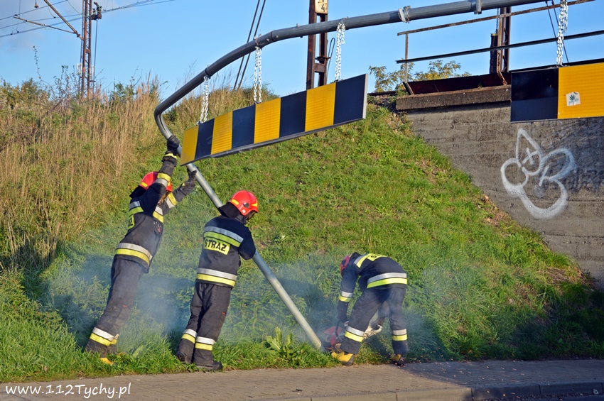 12 października około godziny 8 do dyżurnego SKKM PSP Tychy wpłynęło zgłoszenie o uszkodzonej bramownicy przy moście na ulicy Glinczańskiej. Na miejsce wysłany został jeden zastęp JRG Tychy (GBA). Po dotarciu na miejsce zgłoszenie potwierdziło się. Jak udało nam się ustalić do uszkodzenia bramownicy doszło około godziny 7 jednak sprawca jej zniszczenia oddalił się z miejsca. Strażacy przy użyciu piły tarczowej usunęli bramownice, która po kilku minutach została całkowicie rozebrana i zabrana przez firmę odpowiedzialną za utrzymanie dróg na terenie miasta. Po zakończeniu działań zastęp wrócił do koszar. Jednakże około godziny 9.25 na ulicy Glinczańskiej doszło do kolejnego zdarzenia. Tym razem kierujący samochodem ciężarowym marki IVECO przewożący butle z gazami technicznymi (ADR) nie zastosował się do znaku B-16 (ograniczona wysokość) i kabina swojego pojazdu uderzył w most. Po uderzeniu wycofał się i oddalił się z miejsca zdarzenia. Zachowanie kierowcy samochodu ciężarowego pozostawimy już bez komentarza.