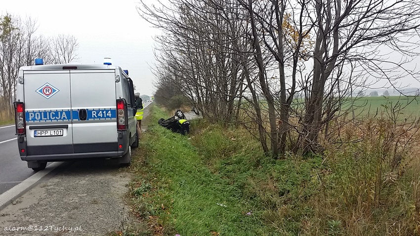 21 października po godzinie 13 do dyżurnego bieruńskiej Policji wpłynęło zgłoszenie o dachowaniu samochodu osobowego na ul. Turyńskiej (DK 44) na odcinku pomiędzy stacją paliw ARGE, a skrzyżowaniem z ul. Chemików i Ekonomiczną. Na miejsce zdarzenia wysłany został jeden z podległych patroli celem potwierdzenia zgłoszenia. Po dotarciu na miejsce zgłoszenie potwierdziło się, a jak przekazali przybyłym na miejsce Policjantom świadkowie zdarzenia kierujący Fordem oddalił się z miejsca zdarzenia. Na miejsce wezwani zostali strażacy z OSP Bieruń Stary (GCBA) i JRG Tychy (GBA). Dodatkowo na miejsce wezwany został patrol z psem tropiącym. Jak się okazało po jego odnalezieniu miał powód aby oddalić się z miejsca zdarzenia – był nietrzeźwy. Po godzinie 16 rozbity samochód został wyciągnięty z rowu i przewieziony na policyjny parking. Bieruńscy Policjanci prowadzą dalsze czynności w sprawie tego zdarzenia.