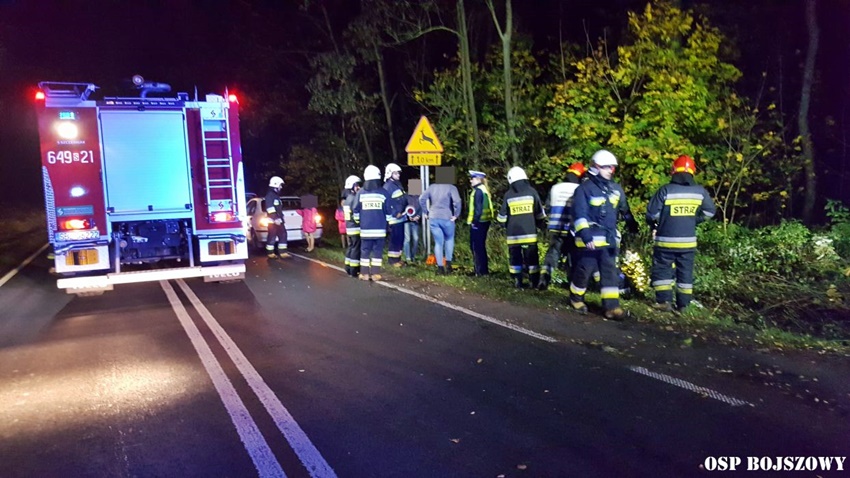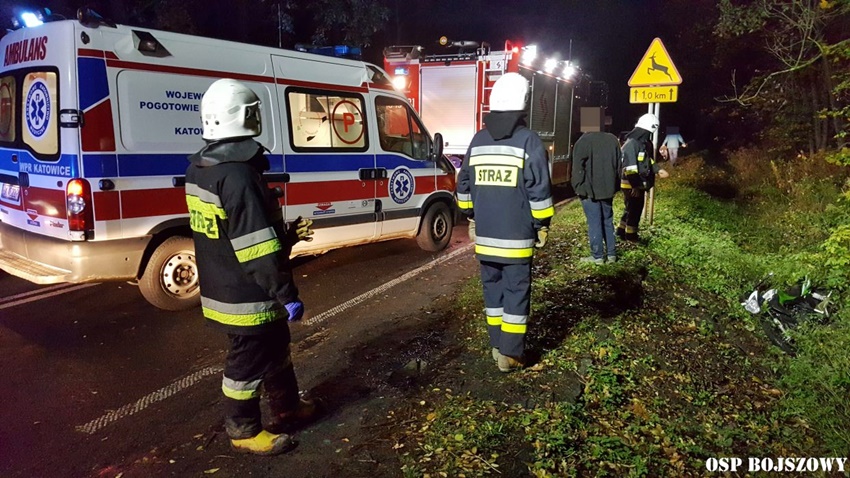 25 października około godziny 18.50 na skrzyżowaniu ulic Ruchu Oporu – Gościnna – Żubrów w Bojszowach Nowych doszło do zdarzenia drogowego. Z niewyjaśnionych przyczyn 17 – letnia kierująca motorowerem utraciła panowanie nad swoim jednośladem i wjechała do przydrożnego rowu. Na miejsce zadysponowane zostały zastępy OSP Bojszowy Nowe (GBA), OSP Bojszowy (GBA), JRG Tychy (GBA, SCRt), ZRM i patrol bieruńskiej Policji. Działania ratowników na miejscu zdarzenia polegały na jego zabezpieczeniu, udzieleniu kwalifikowanej pomocy przedmedycznej, a następnie transporcie poszkodowanej do karetki pogotowia. Jak wstępnie ustalili pracujący na miejscu Policjanci 17 – latka z niewyjaśnionych przyczyn straciła przytomność. Kierująca jednośladem została przetransportowana do szpitala na dokładniejsze badania. Przez około godzinę w miejscu zdarzenia występowały utrudnienia w ruchu. Bieruńscy Policjanci prowadzą dalsze czynności w tej sprawie.