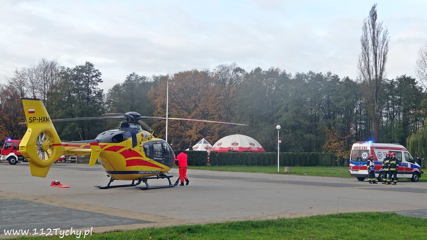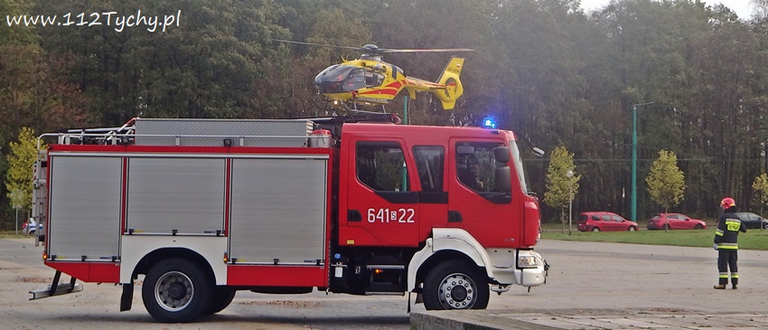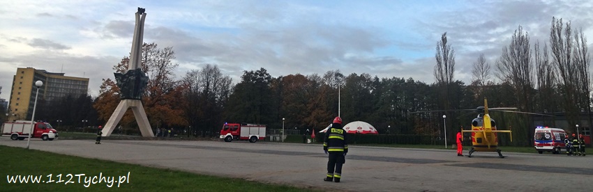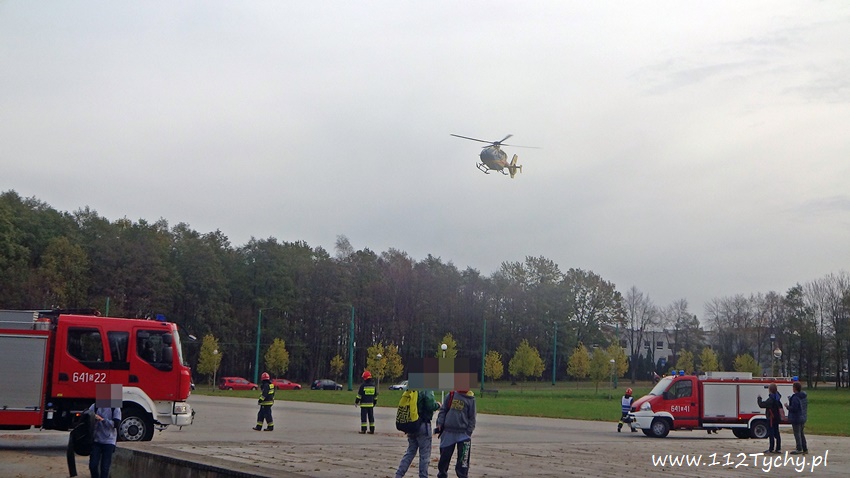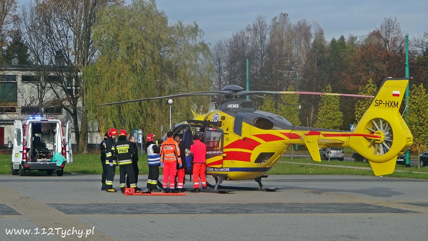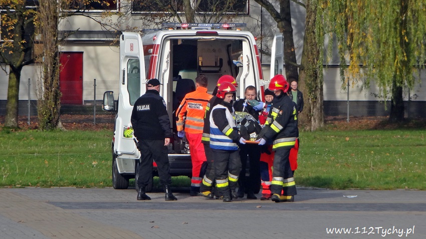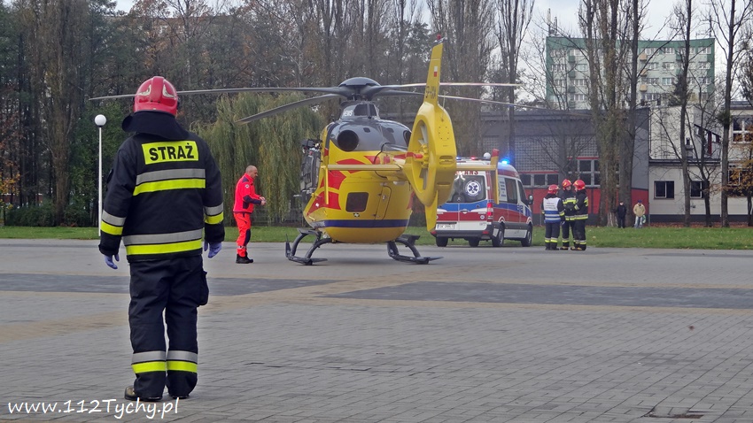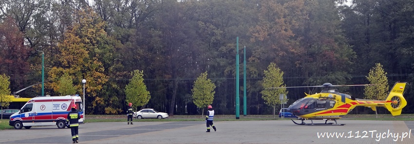 2 listopada około godziny 8.30 dyżurny KMP Tychy otrzymał zgłoszenie, że z okna budynku wielorodzinnego przy ul. Elfów 55 miała wypaść młoda dziewczyna. Na miejsce natychmiast wysłany został jeden z podległych patroli oraz ZRM. Po dotarciu na miejsce zgłoszenie potwierdziło się. Ratownicy medyczni zaopiekowali się młodą dziewczyną, a funkcjonariusze Policji udali się do mieszkania, z okna którego miała wypaść dziewczyna. W mieszkaniu na trzecim piętrze znajdowało się pięć osób (jedna kobieta – trzeźwa i czterech mężczyzn, w tym jeden nieletni – nietrzeźwi). Na miejsce wezwane zostały dodatkowe patrole oraz grupa dochodzeniowo – śledcza. Cała piątka została przewieziona do KMP Tychy celem złożenia wyjaśnień – troje mężczyzn przed wykonaniem czynności zostało osadzonych w Izbie Wytrzeźwień w Sosnowcu. Pracujący na miejscu ratownicy medyczni podjęli decyzję o konieczności transportu poszkodowanej do szpitala w Katowicach Ligocie przy użyciu latającej karetki. Na miejsce zadysponowany został śmigłowiec HEMS – Ratownik 4 z bazy w Gliwicach. Celem zabezpieczenia lądowiska na Plac pod Żyrafą zadysponowane zostały dwa zastępy straży pożarnej z JRG Tychy (GBA, SLRt). Po około czterdziestu minutach działania strażaków i ratowników medycznych zostały zakończone. Tyscy Policjanci prowadzą dalsze czynności mające na celu dokładny przebieg i okoliczności tego zdarzenia.