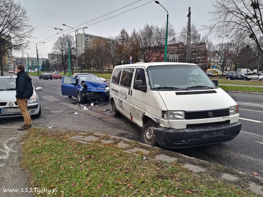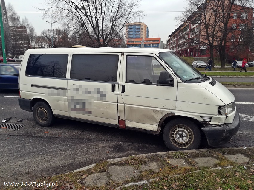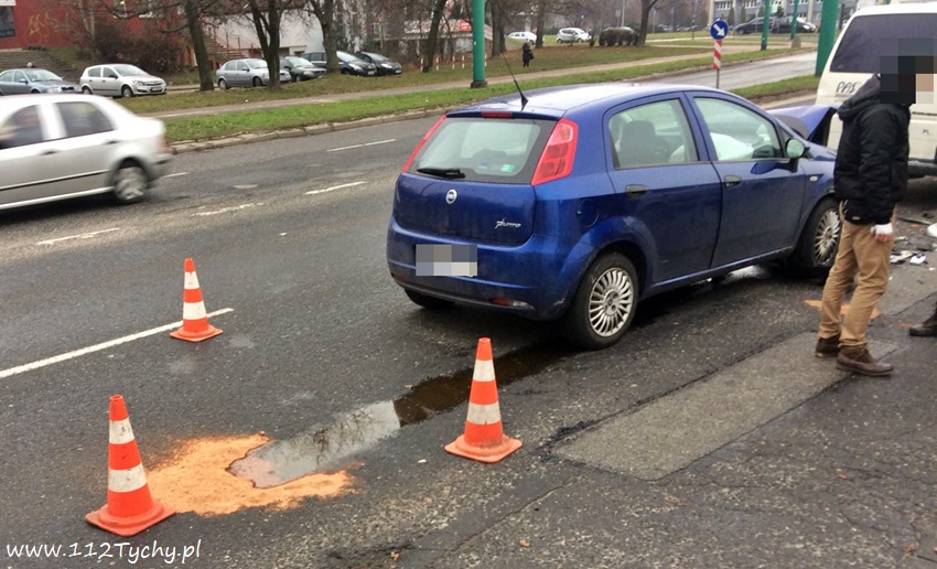 8 grudnia około godziny 12.10 na ulicy Żwakowskiej w rejonie wjazdu na parking ZS nr 4 doszło do zdarzenia drogowego. W zdarzeniu brały udział samochód dostawczy VW T4 oraz osobowy Fiat Punto. Na miejsce wezwany został patrol Policji. Ze względu na wycieki płynów eksploatacyjnych na miejsce zadysponowany został jeden zastęp straży pożarnej z JRG Tychy (GCBARt). Jak udało nam się ustalić kierujący VW wykonywał manewr skrętu w lewo z ul. Żwakowskiej na parking przy ZS nr 4 i nie ustąpił pierwszeństwa przejazdu jadącemu prawym pasem w kierunku al. Bielskiej kierującemu Fiatem. Doszło do czołowo bocznego zderzenia. Uszkodzone pojazdy zablokowały prawy pas. Kierujący Fiatem doznał niegroźnego urazu prawej ręki (został opatrzony przez naszego reportera). Po około godzinie uszkodzone pojazdy zostały odholowane. Tyscy policjanci prowadzą dalsze czynności w tej sprawie.