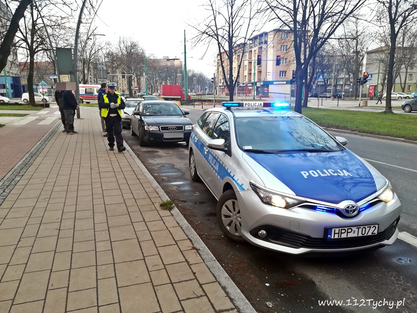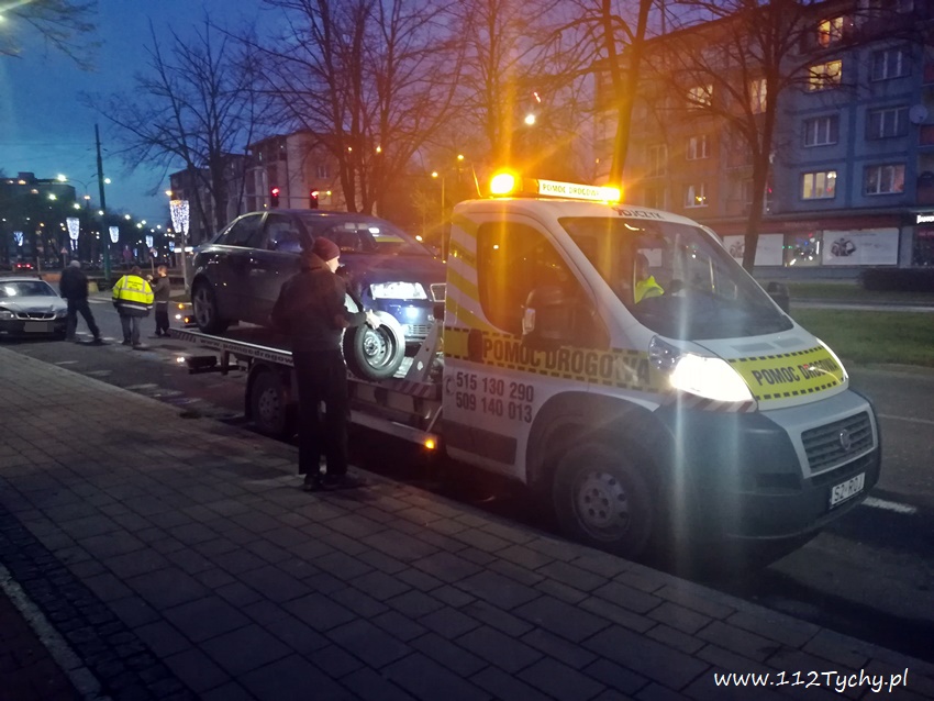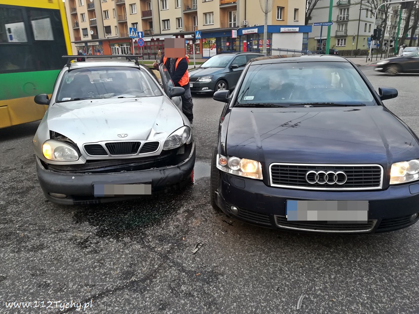 9 grudnia około godziny 14.50 na skrzyżowaniu al. Niepodległości z ul. Grota Roweckiego doszło do czołowo – bocznego zderzenia dwóch samochodów osobowych. Na miejsce zdarzenia wezwany został patrol Policji. Przed przyjazdem Policji uszkodzone pojazdy pomimo znacznych uszkodzeń zostały przestawione na pobliski postój Taxi. Na szczęście wszystkim osobom podróżującym rozbitymi pojazdami nic się nie stało. Jak udało nam się ustalić winną zdarzenia była kierująca osobowym Audi młoda kobieta, która wykonując manewr skrętu w lewo z al. Niepodległości w ul. Grota Roweckiego nie ustąpiła pierwszeństwa jadącemu al. Niepodległości na wprost w kierunku UM Tychy, kierującemu Daewoo. Kierująca Audi została ukarana mandatem karnym za spowodowanie kolizji drogowej. Uszkodzone pojazdy po około godzinie zostały odholowane przez holowniki pomocy drogowych.