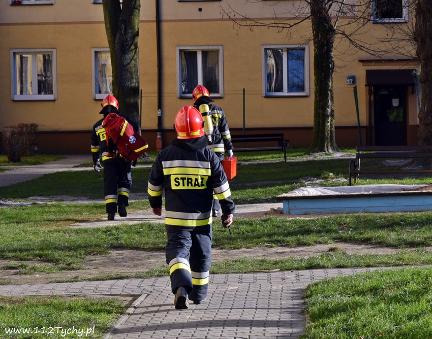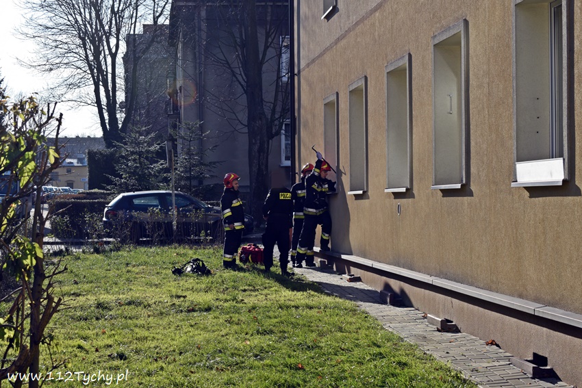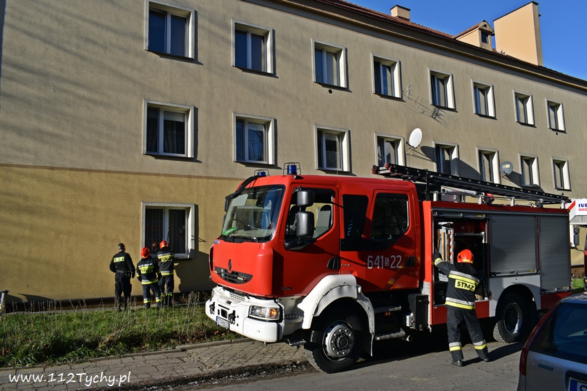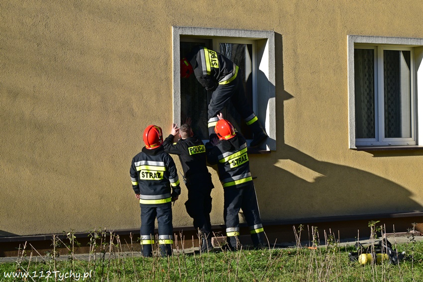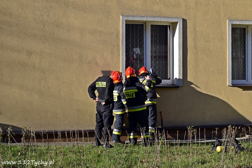 10 grudnia około godziny 12.20 do dyżurnego SKKM PSP Tychy wpłynęło zgłoszenie od dyżurnego KMP Tychy z prośba o pomoc w otwarciu mieszkania w budynku wielorodzinnym przy ul. Bukowej. Ze zgłoszenia wynikało, że w mieszkaniu może znajdować się osoba potrzebująca pomocy. Na miejsce poza patrolem Policji zadysponowane zostały dwa zastępy JRG Tychy (GBA, SD) oraz ZRM. Strażacy przy użyciu podręcznego sprzętu burzącego otworzyli okno i weszli do mieszkania. W mieszkaniu ratownicy znaleźli kobietę. Z uzyskanych informacji wynika, że służby ratunkowe powiadomione zostały przez członka rodziny kobiety. Jak się okazało kobieta zemdlała i nie potrafiła otworzyć drzwi. Po przebadaniu kobieta pozostała w mieszkaniu. Po około godzinie działania zostały zakończone.