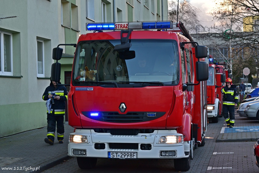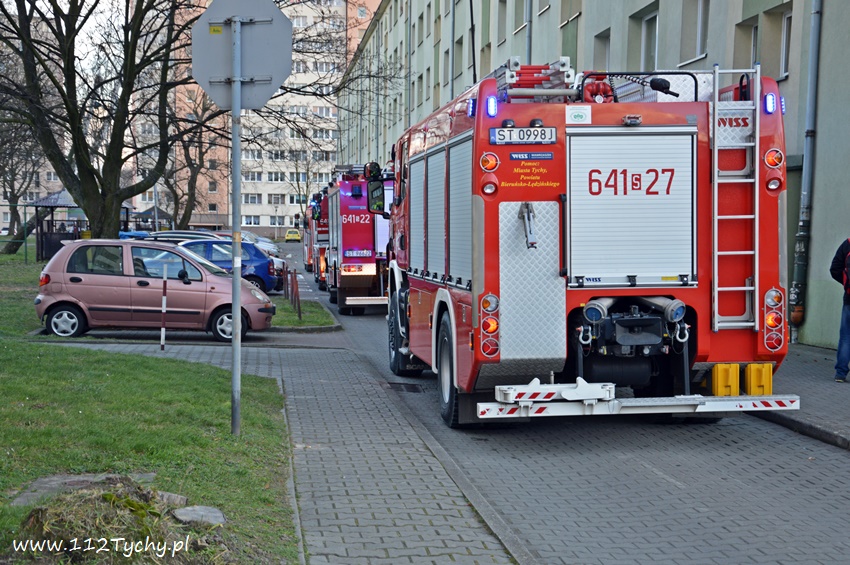 14 grudnia około godziny 14.50 do dyżurnego SKKM PSP Tychy wpłynęło zgłoszenie o dymie wydobywającym się z jednego z mieszkań w budynku wielorodzinnym przy al. Niepodległości 62. Na miejsce natychmiast wysłane zostały cztery zastępy JRG Tychy (GBA, GBA, GCBARt, SD). Po przybyciu pod wskazany z zgłoszeniu adres strażacy nie zlokalizowali pożaru. Po ponownym kontakcie ze zgłaszającym okazało się, że pomylił on numery i chodzi o mieszkanie w budynku przy al. Niepodległości 65 tam też zostały prze dysponowane zastępy. W trakcie rozpoznania okazało się, że powodem zadymienia jest przypalona potrawa. Po około trzydziestu minutach działania zostały zakończone i zastępy udały się do koszar. Jednak w trakcie powrotu strażacy jednego z zastępów zauważyli leżącego na trawniku mężczyznę. Natychmiast przystąpili do udzielania mężczyźnie pomocy. Na miejsce wezwany został ZRM i patrol Policji. Mężczyzna został zabrany do szpitala. Działania zostały zakończone po około dwudziestu minutach.