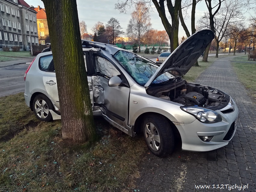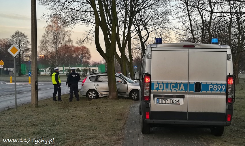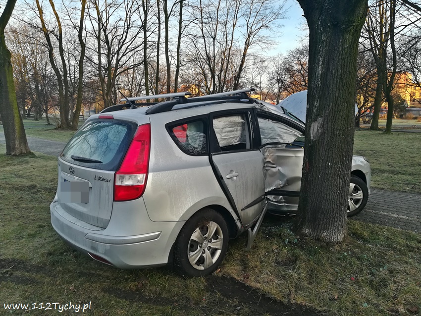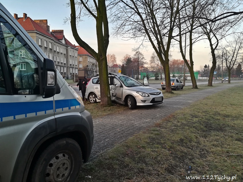 3 stycznia około godziny 7.40 na ulicy Hlonda w rejonie skrzyżowania z ulicą Brzozową doszło do zdarzenia drogowego. Na bardzo śliskiej nawierzchni kierująca samochodem osobowym Hyundai i 30SW utraciła panowanie nad swoim pojazdem wpadła w poślizg i uderzyła stroną pasażera w drzewo. Kierująca podróżowała z ok. 8 letnim chłopcem – nic im się nie stało. Na miejsce wezwany został patrol Policji, kierująca nie chciała pomocy medycznej. Jak się okazało dopiero po kilkunastu minutach od zdarzenia na ul. Hlonda pojawiła się piaskarka – na drodze było lodowisko. Około godziny 9 rozbity samochód został odholowany. Kierująca Hyundaiem ukarana została mandatem karnym. Jak udało nam się ustalić, kierująca Hyundaiem na łuku drogi dodatkowo wyprzedzała samochód nauki jazdy. Patrząc na zniszczenia pojazdu to cud, że nikomu nic się nie stało.