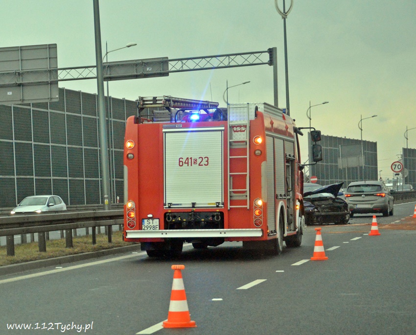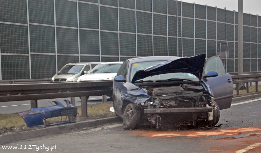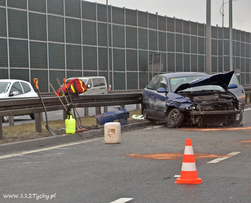 4 lutego po godzinie 15 dyżurny KMP Tychy otrzymał zgłoszenie o zdarzeniu drogowym na trasie DK 1 w rejonie zjazdu z trasy S1 na pasie w kierunku Pszczyny. Ze zgłoszenia wynikało, że kierowca osobowego Seat-a uderzył w bariery blokując lewy pas. Na miejsce natychmiast wysłany został jeden z podległych patroli oraz zastępy tyskiej straży pożarnej (GBA, GCBARt, SCRt). Po dotarciu na miejsce zgłoszenie potwierdziło się. Na szczęście kierowcy osobówki nic poważnego się nie stało i nie wymagał pomocy ratowników medycznych. Strażacy zabezpieczyli miejsce zdarzenia, zneutralizowali plamy płynów eksploatacyjnych oraz odłączyli akumulator w rozbitym pojeździe. Około 30 letni mężczyzna kierujący Seat-em ukarany został mandatem karnym. Rozbity pojazd został odholowany przez pomoc drogową. Utrudnienia w ruchu trwały prawie dwie godziny.