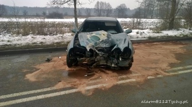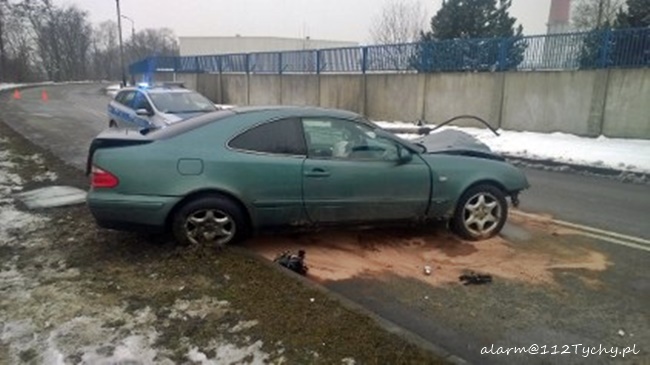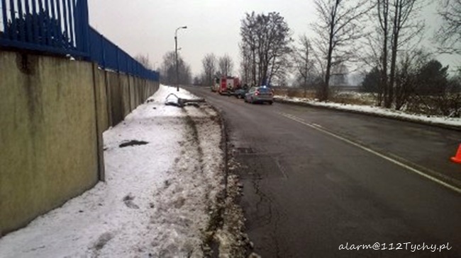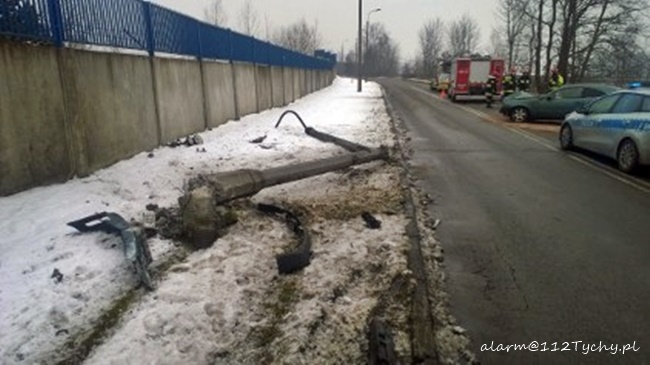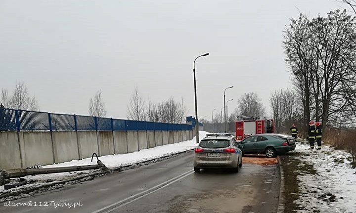 10 lutego około godziny 13.30 dyżurni tyskiej Policji i SKKM PSP Tychy otrzymali zgłoszenie o zdarzeniu drogowym na ulicy Turyńskiej w rejonie bramy towarowej FCA. Ze zgłoszenia wynikało, że samochód osobowy uderzył w słup oświetleniowy, a kierowca doznał urazu głowy. Na miejsce natychmiast skierowane zostały zastępy JRG Tychy (GBA, SCRt), ZSR SIRIO (GBA) oraz karetki pogotowia ZSR SIRIO, WPR Katowice i patrol tyskiej Policji. Po dotarciu na miejsce okazało się, że do zdarzenia doszło na drodze wewnętrzne wokół FCA. Kierowca osobowego Mercedesa stracił panowanie nad swoim samochodem i uderzył w betonowa latarnię ścinając ją. Kierowca osobówki został przetransportowany do szpitala. Przez blisko godzinę ruch w miejscu zdarzenia odbywał się z utrudnieniami. Tyscy Policjanci prowadzą dalsze czynności w sprawie tego zdarzenia.