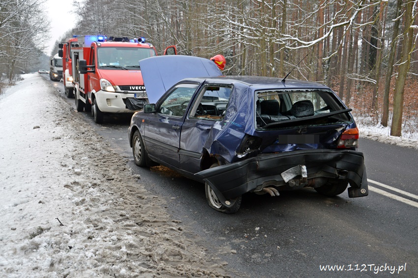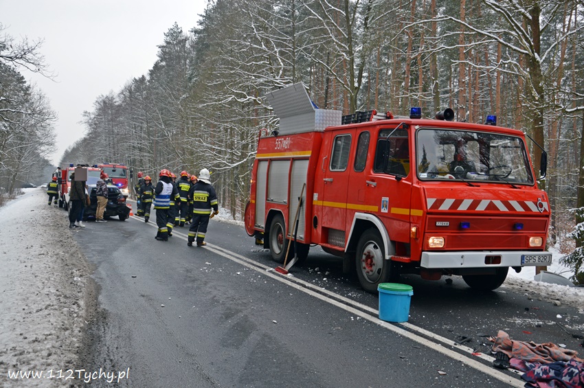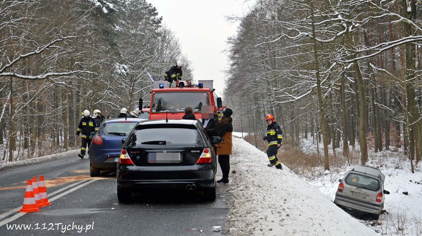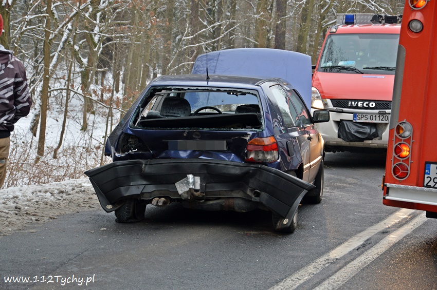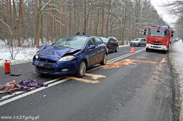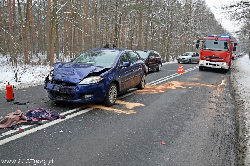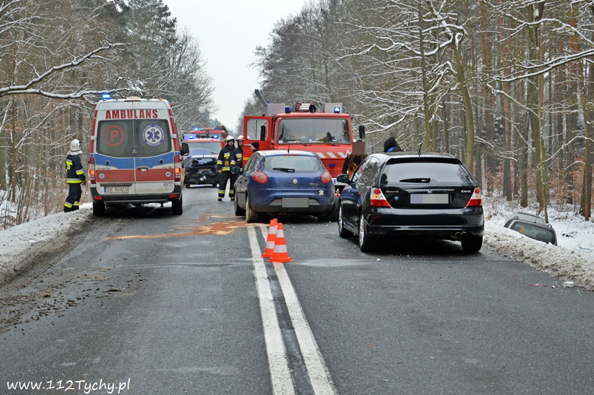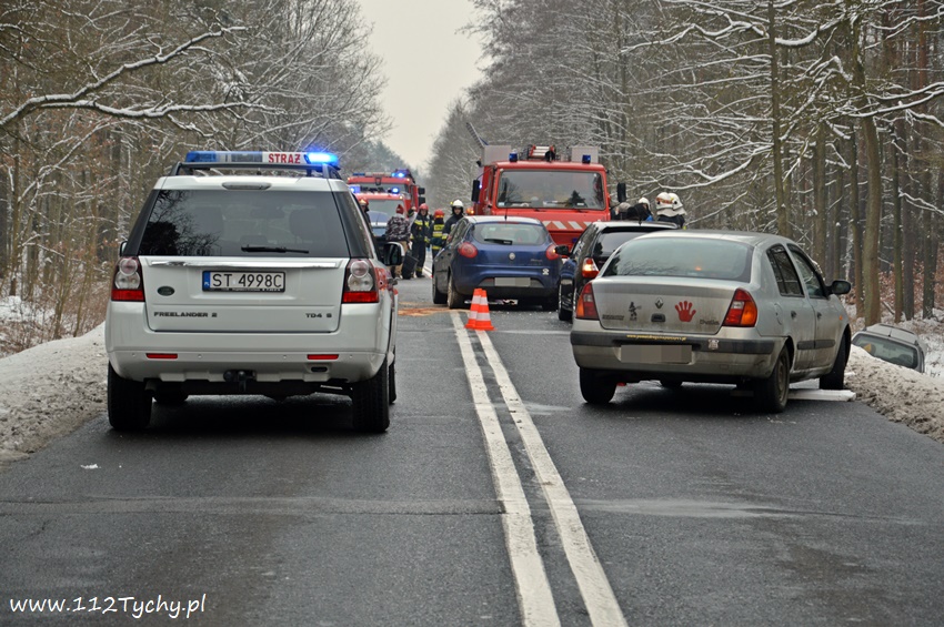 10 lutego około godziny 14.10 na starej drodze na Kobiór doszło do zdarzenia drogowego z udziałem trzech samochodów osobowych. Ze względu na pogranicze rejonów na miejsce wysłane zostały zastępy OSP Kobiór (GBARt), JRG Pszczyna (GBA, SLRt), JRG Tychy (GBA, SCRt), patrol pszczyńskiej Policji oraz ZRM. Po dotarciu na miejsce zgłoszenie potwierdziło się, a droga w obu kierunkach została całkowicie zablokowana. Jak udało nam się ustalić kierujący VW Golfem kierowca zauważył na drodze przeszkodzę (styropian, koc), która chciał ominąć i zaczął hamować, niestety jadący za nim kierowca Fiata nie zdążył wyhamować i uderzył w tył VW. Jadący za nimi kierowca Opla zahaczył Fiata, a następnie wjechał swoim samochodem do przydrożnego rowu. Na szczęście nikomu z uczestników nic się nie stało. Na miejsce dojechał również oficer operacyjny KM PSP Tychy (SLRr). Po kilkunastu minutach zastępy JRG Tychy wróciły do koszar, a miejsce zdarzenia zabezpieczali strażacy OSP Kobiór, JRG Pszczyna i pszczyńscy Policjanci. Utrudnienia w ruchu trwały ponad dwie godziny. Pszczyńscy Policjanci prowadzą dalsze czynności w sprawie tego zdarzenia.