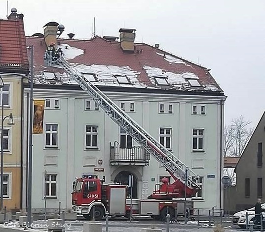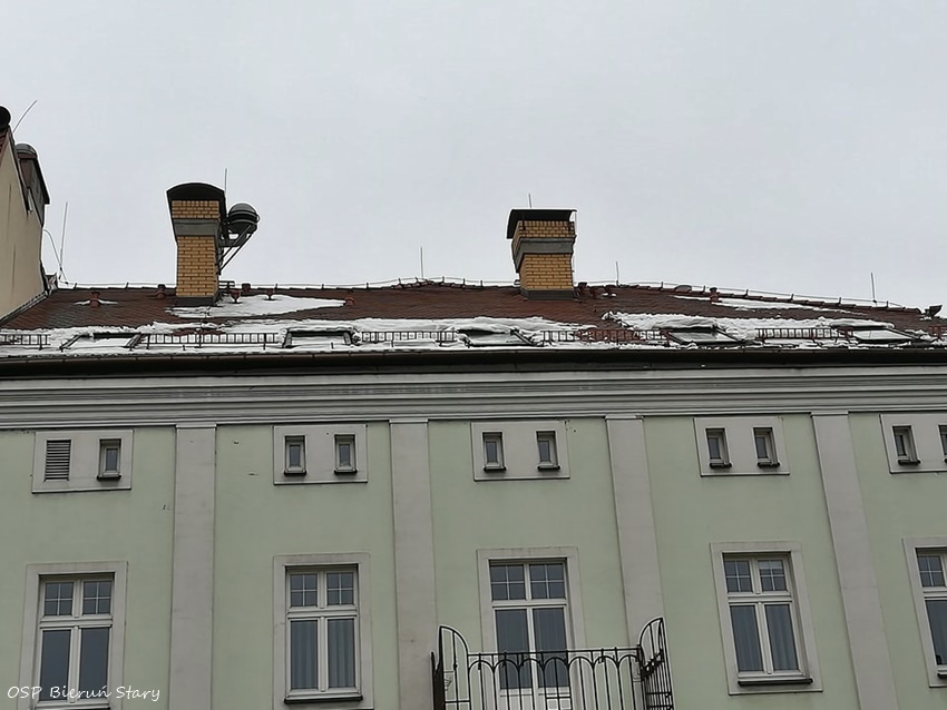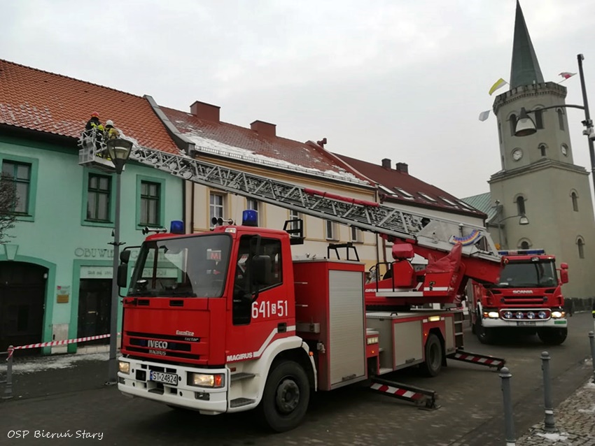 12 lutego około godziny 12.25 dyżurny SKKM PSP Tychy otrzymał zgłoszenie o nawisach śnieżnych na budynkach przy ul. Rynek w Bieruniu. Jednym z budynków miał być Urząd Miasta. Na miejsce zadysponowany został zastęp OSP Bieruń Stary (GCBA) oraz drabina mechaniczna z JRG Tychy (SD). Po dotarciu na miejsce strażacy z kosza drabiny mechanicznej używając podręcznego sprzętu burzącego oraz bosaka usunęli nawisy. Łącznie działania trwały blisko dwie i pół godziny.