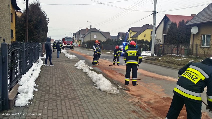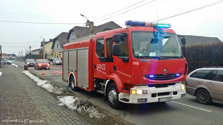 15 lutego około godziny 15.40 w Bojszowach Nowych na ul. Ruchu Oporu doszło do zdarzenia drogowego. Z samochodu VW T4 oderwał się element karoserii i uderzył w jadące za nim Audi doprowadzając do uszkodzenia miski olejowej co skutkowało plamą oleju na drodze. Na miejsce wezwany został patrol Policji oraz zastępy OSP Bojszowy Nowe (GBA) i JRG Tychy (GBA). W miejscu zdarzenia ruch odbywał się wahadłowo. Strażacy zneutralizowali plamę oleju. Po około trzydziestu minutach działania zostały zakończone i ruch został przywrócony.