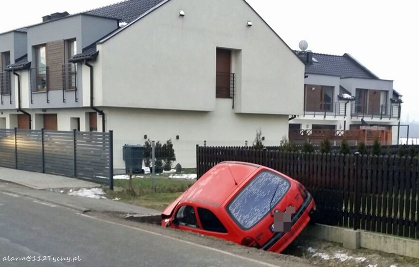 21 lutego o godzinie 6.30 do dyżurnego tyskiej Policji oraz SKKM PSP Tychy wpłynęło zgłoszenie o zdarzeniu drogowym na ul. Dzwonkowej. Ze zgłoszenia wynikało, że do rowu miał wjechać samochód osobowy Opel Corsa. Na miejsce natychmiast wysłane zostały zastępy JRG Tychy (GBA, GCBARt, SLRt), ZRM i patrole Policji. Po dotarciu na miejsce zgłoszenie potwierdziło się. Samochód wjechał do rowu i uderzył w betonowy przepust. Osoby podróżujące Oplem nie doznały żadnych poważniejszych obrażeń. Kierowca pojazdu został poddany badaniu trzeźwości – wynik: ok. 2 promili w wydychanym powietrzu. Kierowca został zatrzymany i przewieziony do KMP Tychy celem wykonania dalszych czynności. Na miejsce został wezwany również policyjny technik. Rozbity pojazd został odholowany przez pomoc drogową. Utrudnienia w ruchu trwały około dwóch godzin.