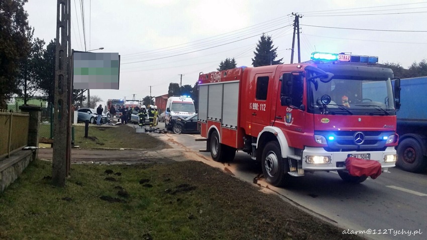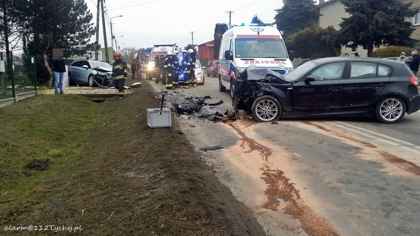21 lutego po godzinie 15.30 na ul. Zwycięstwa w Ornontowicach doszło do czołowego zderzenia dwóch osobówek. Na miejsce natychmiast wezwane zostały wszystkie służby ratunkowe: zastępy OSP Ornontowice (GBA), JRG Mikołów (GBA, SRt), ZRM oraz patrole mikołowskiej Policji. Ruch w miejscu zdarzenia został całkowicie zablokowany. W zdarzeniu brały udział BMW i Opel. Kierowcy obu pojazdów zostali przetransportowani do szpitala na dokładniejsze badania. Jak wstępnie ustalili mikołowscy Policjanci winnym zdarzenia jest kierowca BMW, który z niewyjaśnionych przyczyn znalazł się na pasie przeciwnym doprowadzając do zderzenia. Działania strażaków na miejscu polegały na jego zabezpieczeniu, odłączeniu akumulatorów, udzieleniu poszkodowanym KPP a po wykonaniu przez Policję czynności uprzątnięciu rozbitych pojazdów i neutralizacji plam płynów eksploatacyjnych. Wraki pojazdów zostały odholowane przez pomoc drogową. Utrudnienia w ruchu trwały blisko dwie godziny. Mikołowscy Policjanci prowadzą dalsze czynności w sprawie tego zdarzenia.