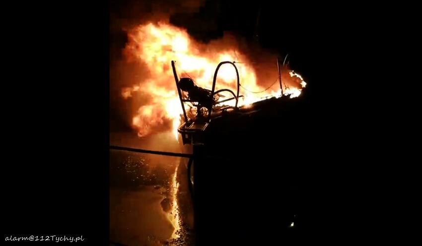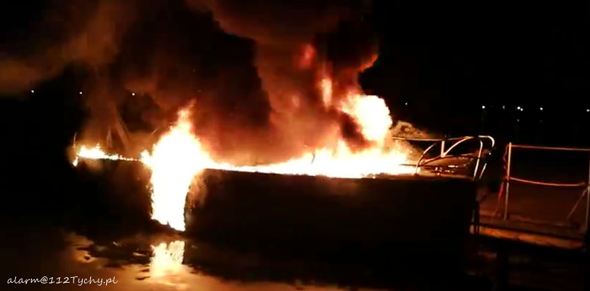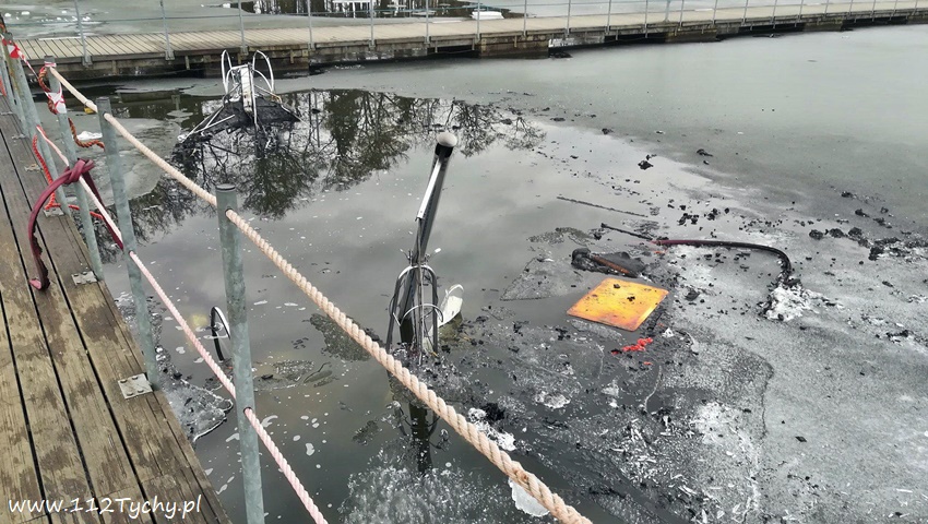 12 marca około godziny 2.10 dyżurny SKKM PSP Tychy otrzymał zgłoszenie o pożarze jachtu zacumowanego przy kei miejskiej na terenie OW Paprocany. Na miejsce natychmiast zadysponowane zostały zastępy JRG Tychy (GBA, GCBARt, SLRt) oraz Dowódca JRG Tychy (SLRr), patrol Policji oraz przedstawiciel WOPR Tychy. Po dotarciu na miejsce zgłoszenie potwierdziło się. Jacht był całkowicie objęty pożarem. Strażacy podali dwa prądy gaśnicze: jeden wody i jeden piany ciężkiej celem ugaszenia ognia. W wyniku pożaru jacht zatonął. Celem wykluczenia obecności osób wewnątrz zatopionej jednostki na miejsce wezwana została Specjalistyczna Grupa Ratownictwa Wodno – Nurkowego z JRG Bytom (SRw). Po dotarciu na miejsce nurkowie z Bytomia zeszli pod wodę. Na szczęście wewnątrz jachtu nikogo nie znaleziono. Działania gaśnicze i poszukiwawcze zakończone zostały około godziny 7 rano. Na miejsce dodatkowo wezwany został policyjny technik kryminalistyki oraz grupa dochodzeniowo śledcza. O pożarze powiadomiony został również właściciel jachtu – Centrum Sportów Wodnych H2O. Wartość strat wstępnie oszacowano na ponad 100 tys złotych. Ze wstępnych ustaleń wynika, że przyczyną pożaru było podpalenie. Policja prowadzi dochodzenie w tej sprawie. Właściciel jachtu wyznaczył nagrodę w wysokości 20 tys złotych za pomoc w złapaniu sprawcy pożaru.