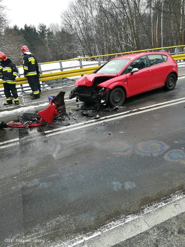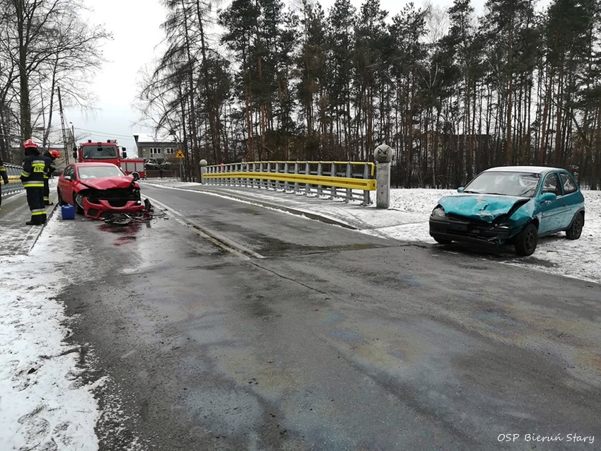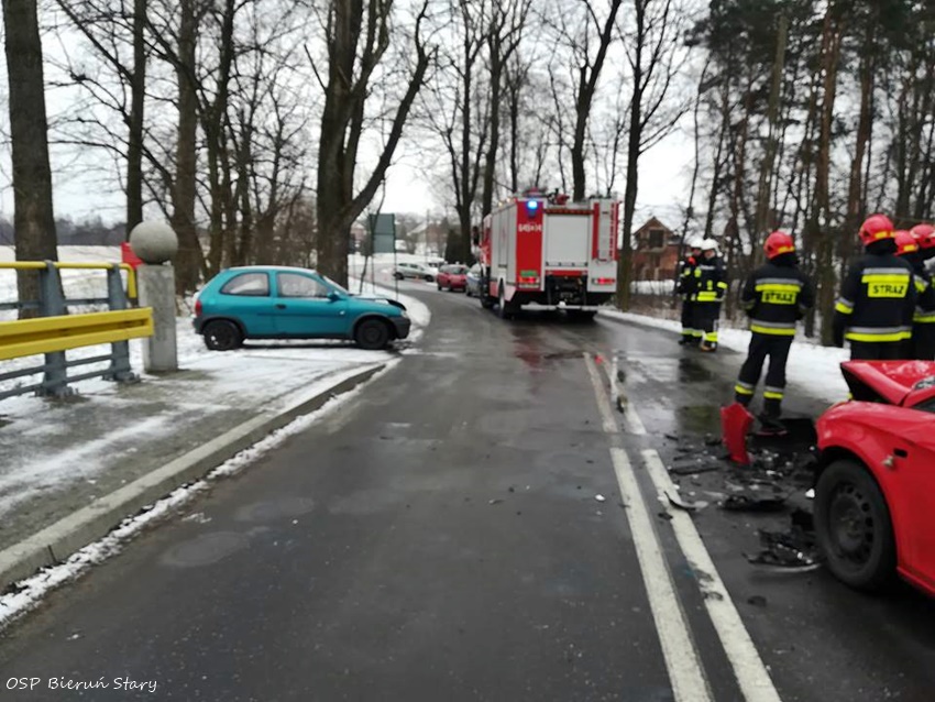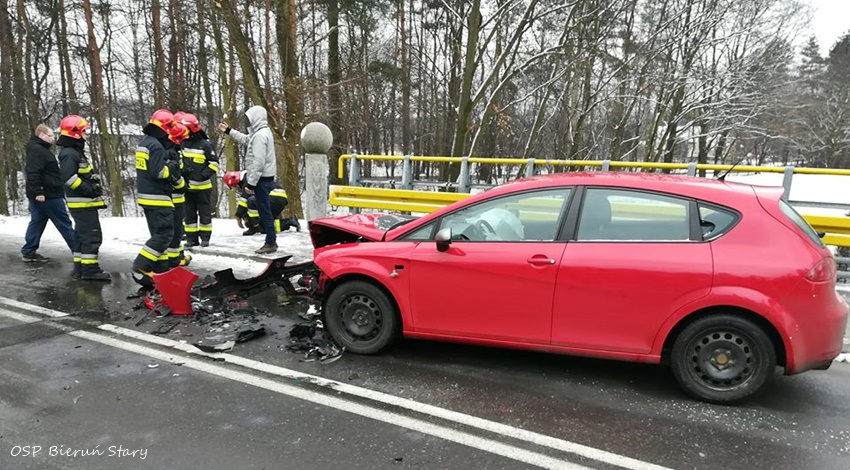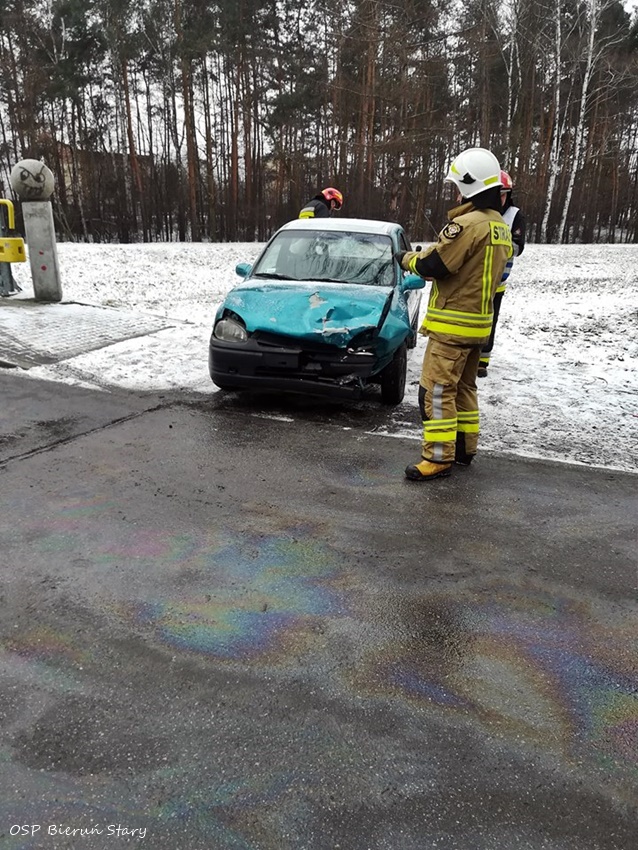 17 marca dyżurny bieruńskiej Policji otrzymał zgłoszenie o zdarzeniu drogowym na skrzyżowaniu ul. Wita i Łysinowej w Bieruniu. Na miejsce natychmiast skierowany został patrol Policji oraz ZRM i zastępy straży pożarnej z OSP Bieruń Stary (GCBA) i JRG Tychy (GBA, GCBARt, SCRt). Po dotarciu na miejsce zgłoszenie potwierdziło się. Doszło tam do czołowego zderzenia Seata z Oplem. Miejsce zdarzenia zostało zabezpieczone, a strażacy dodatkowo przy użyciu sorbentu zneutralizowali płyny eksploatacyjne. Kierowca Seata (trzeźwy) był na miejscu (nie wymagał przewiezienia do szpitala), a kierowca Opla oddalił się jeszcze przed przybyciem służb ratunkowych. Kierowca Opla został ustalony przez Policjantów trwają jego poszukiwania. Ze wstępnych ustaleń kierowca Opla z niewyjaśnionych przyczyn utracił panowanie nad swoim pojazdem i doprowadził do zderzenia. Przez blisko godzinę ruch w miejscu zdarzenia był zablokowany. Bieruńscy Policjanci prowadzą dalsze czynności w tej sprawie.